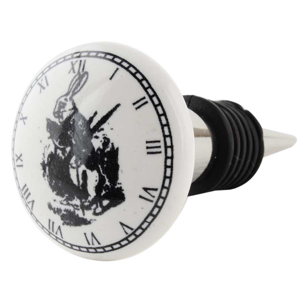 Black Rabbit Clock Ceramic Wine Bottle Stopper. Zinc Alloy Wine Bottle Stopper with Attractive Jute Bag Packaging.