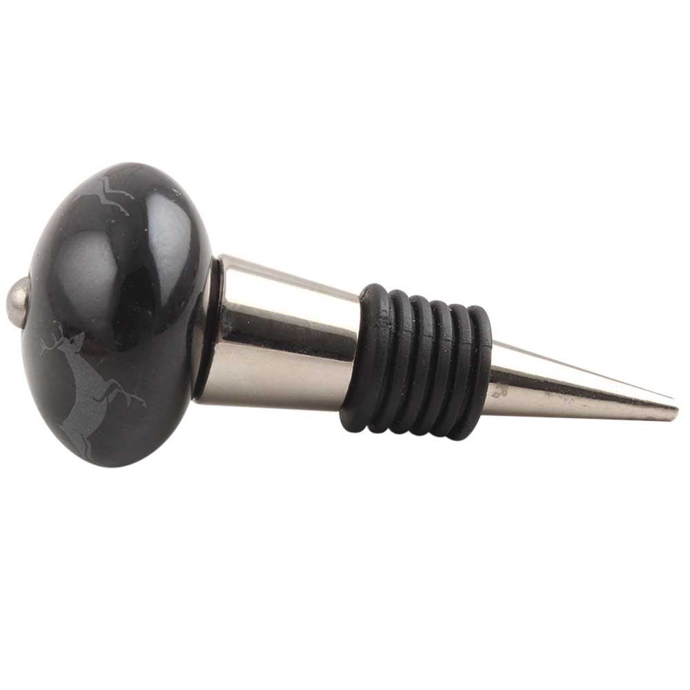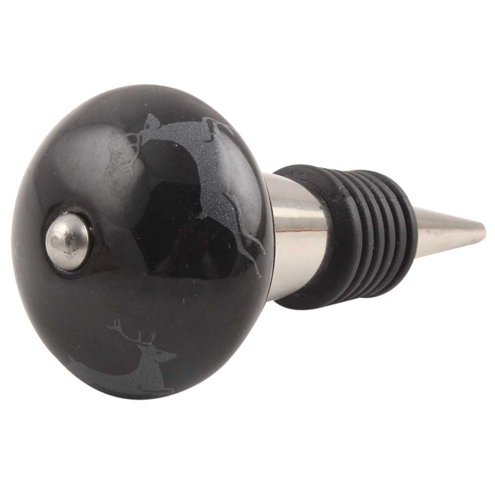 Black Runing Rein Deer Pattern Ceramic Wine Stopper.zinc alloy wine bottle stopper with attractive Jute Bag Packaging.
