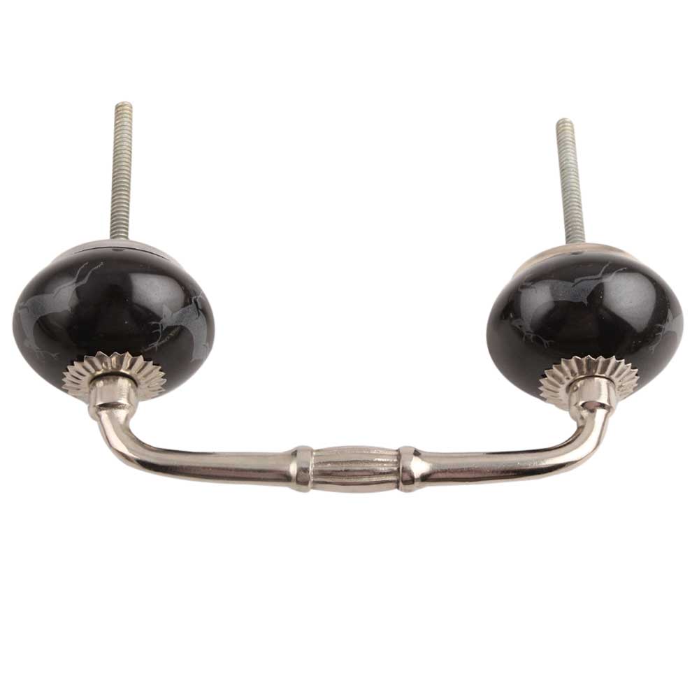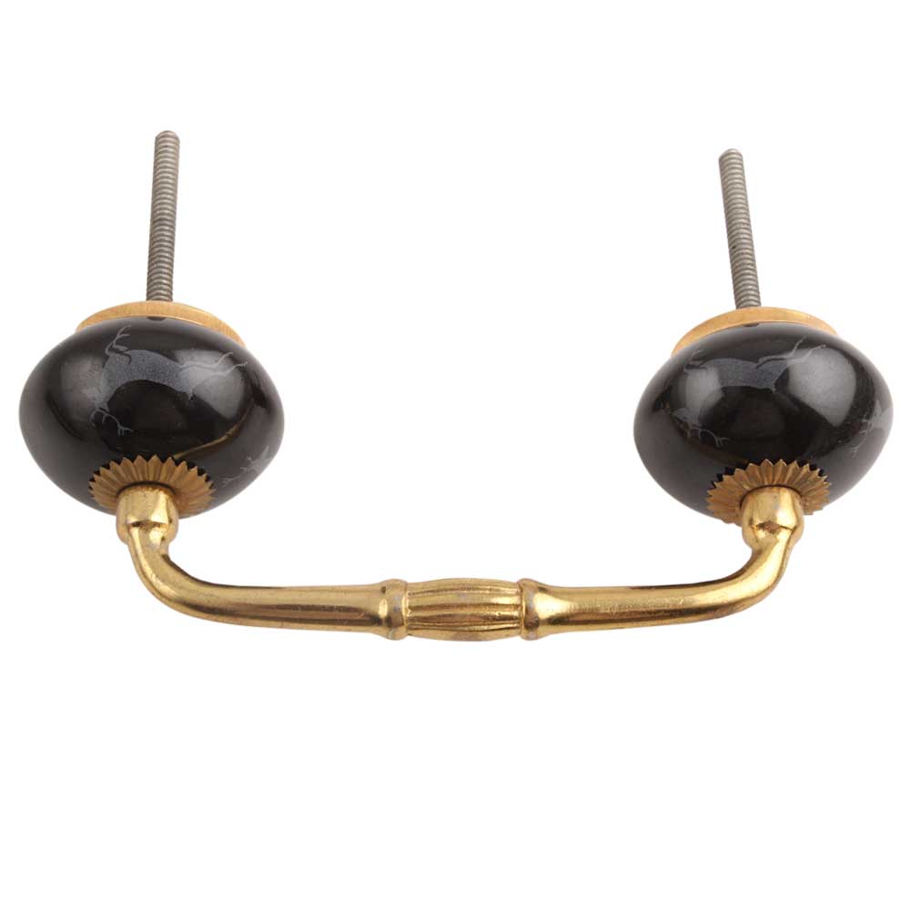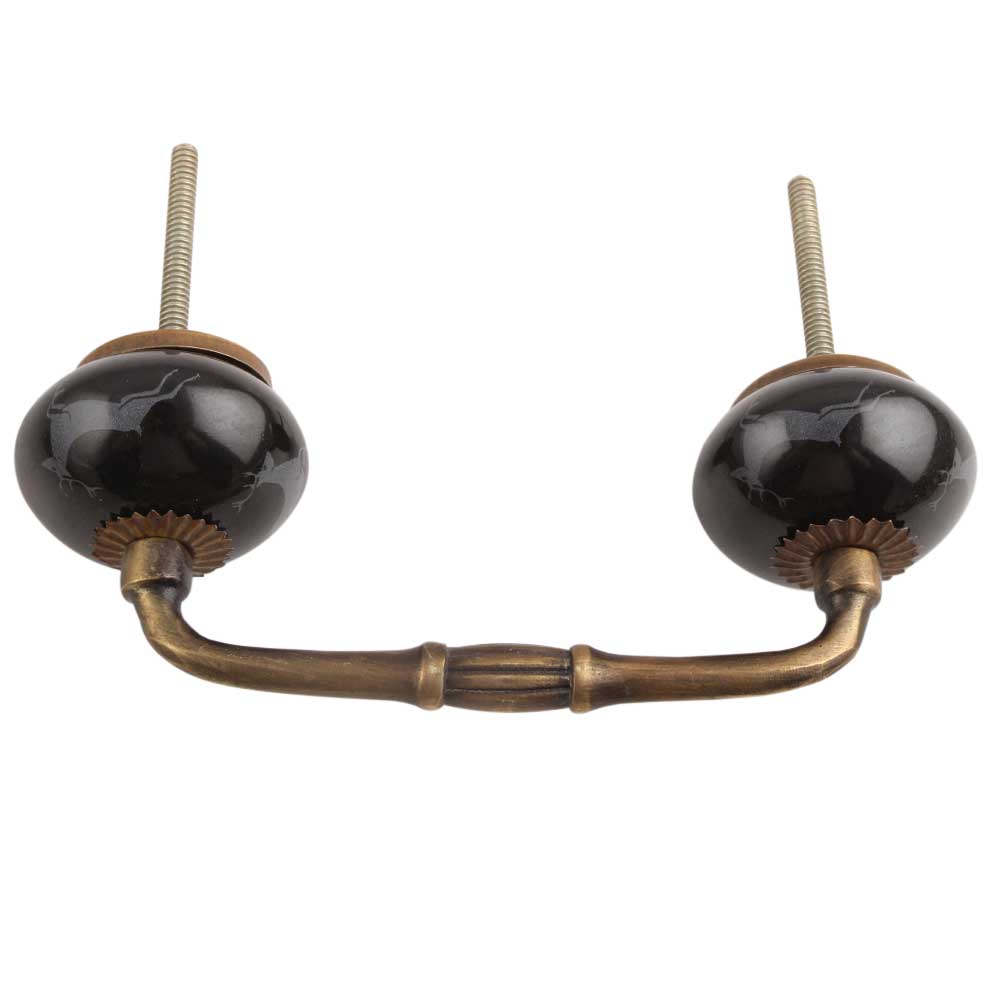 Black Running Rein Deer Pattern Ceramic Bridge Handle. Ideal for Drawer, Dresser, Cabinet, Wardrobe, Cupboard and Almirah.