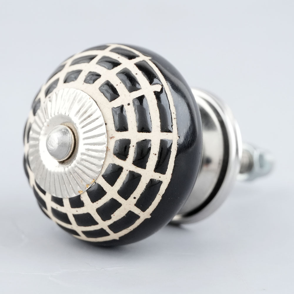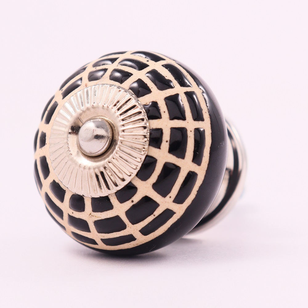 Black Spider Net Etched Ceramic Cabinet Knobs. Ideal for Drawer, Dresser, Cabinet, Wardrobe, Cupboard and Almirah.