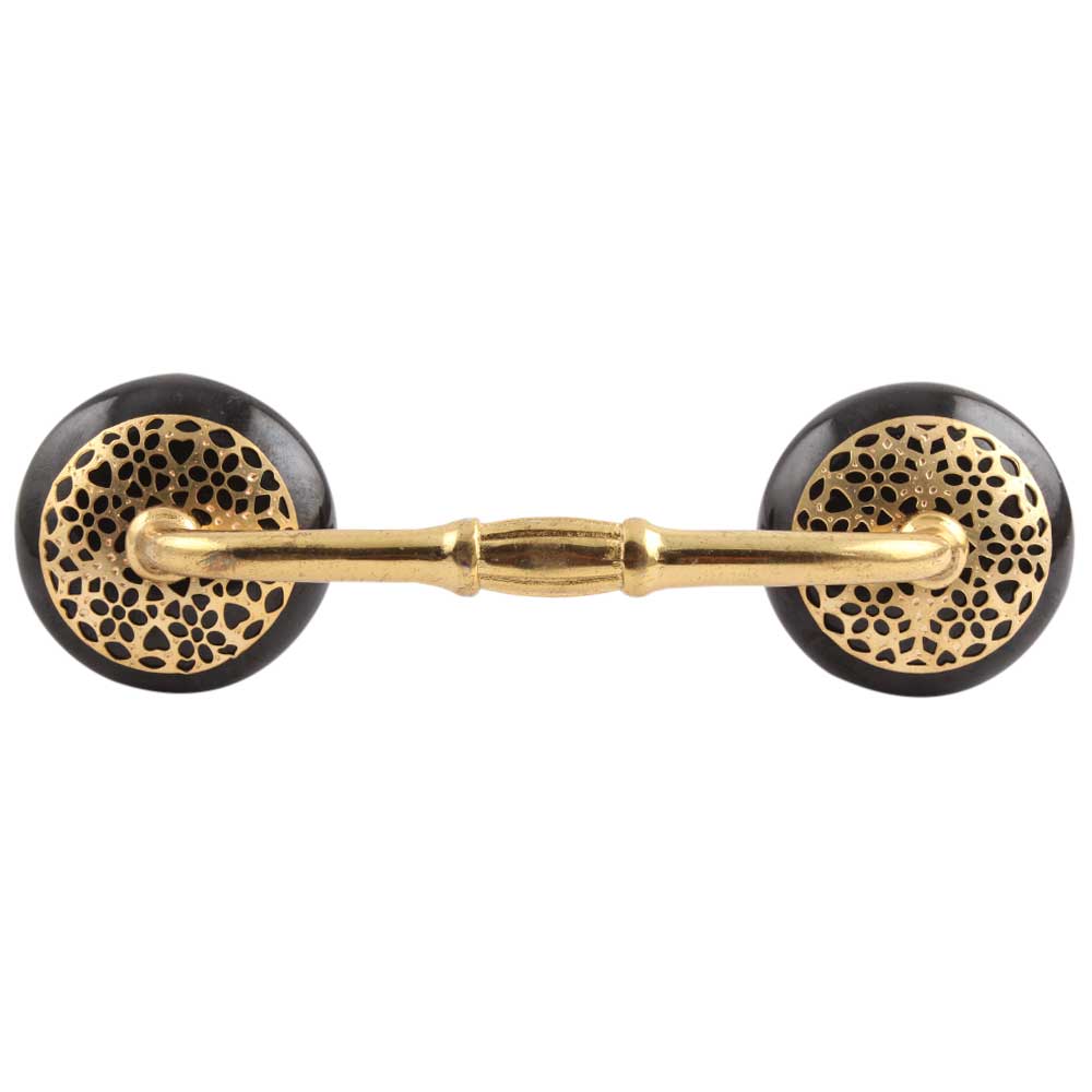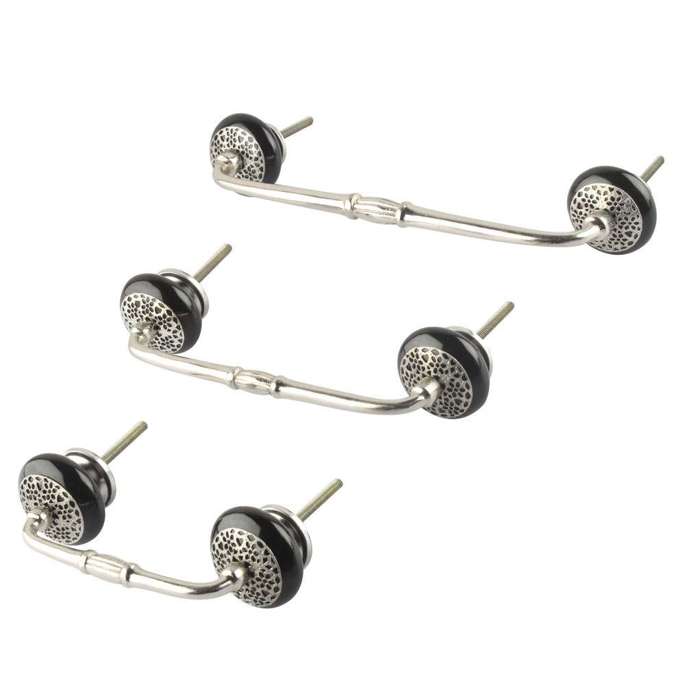 Black Strewn Flat Ceramic Bridge Handle. Ideal for Drawer, Dresser, Cabinet, Wardrobe, Cupboard and Almirah.
