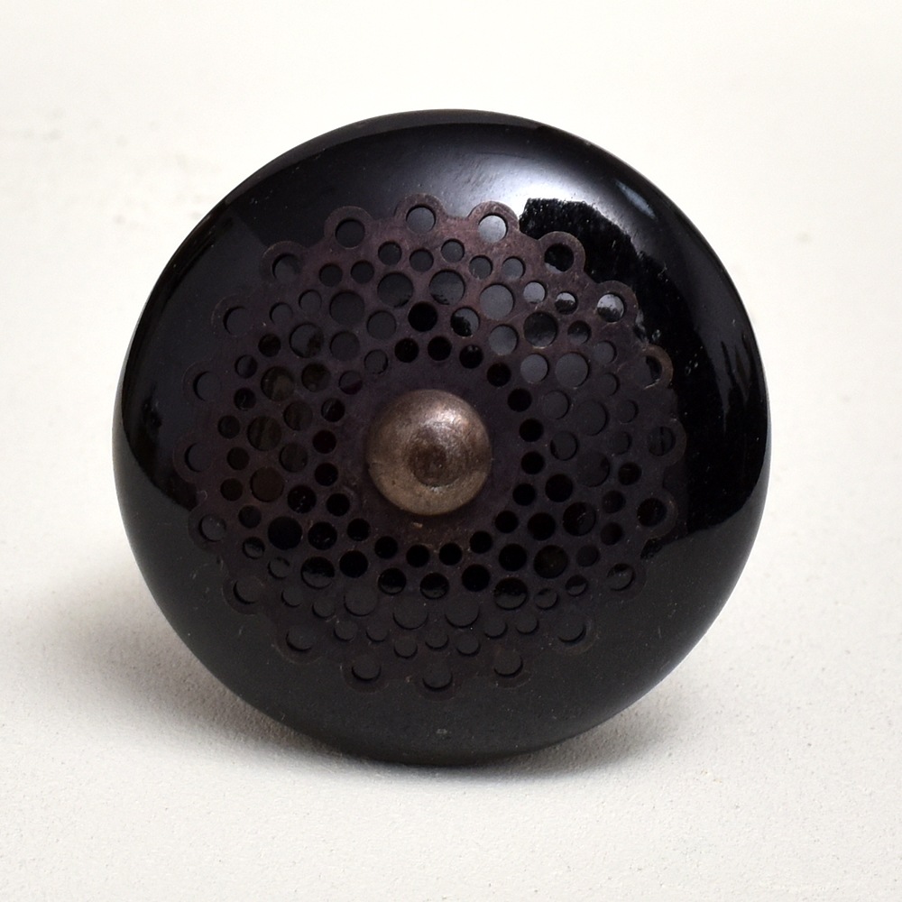 Introducing the Black Strewn Flat Ceramic Knob, a chic and contemporary hardware piece that effortlessly elevates the appearance of your cabinets, drawers, and furniture. With its minimalist design and sleek black finish, this knob brings a touch of sophistication to any modern or industrial-inspired space.