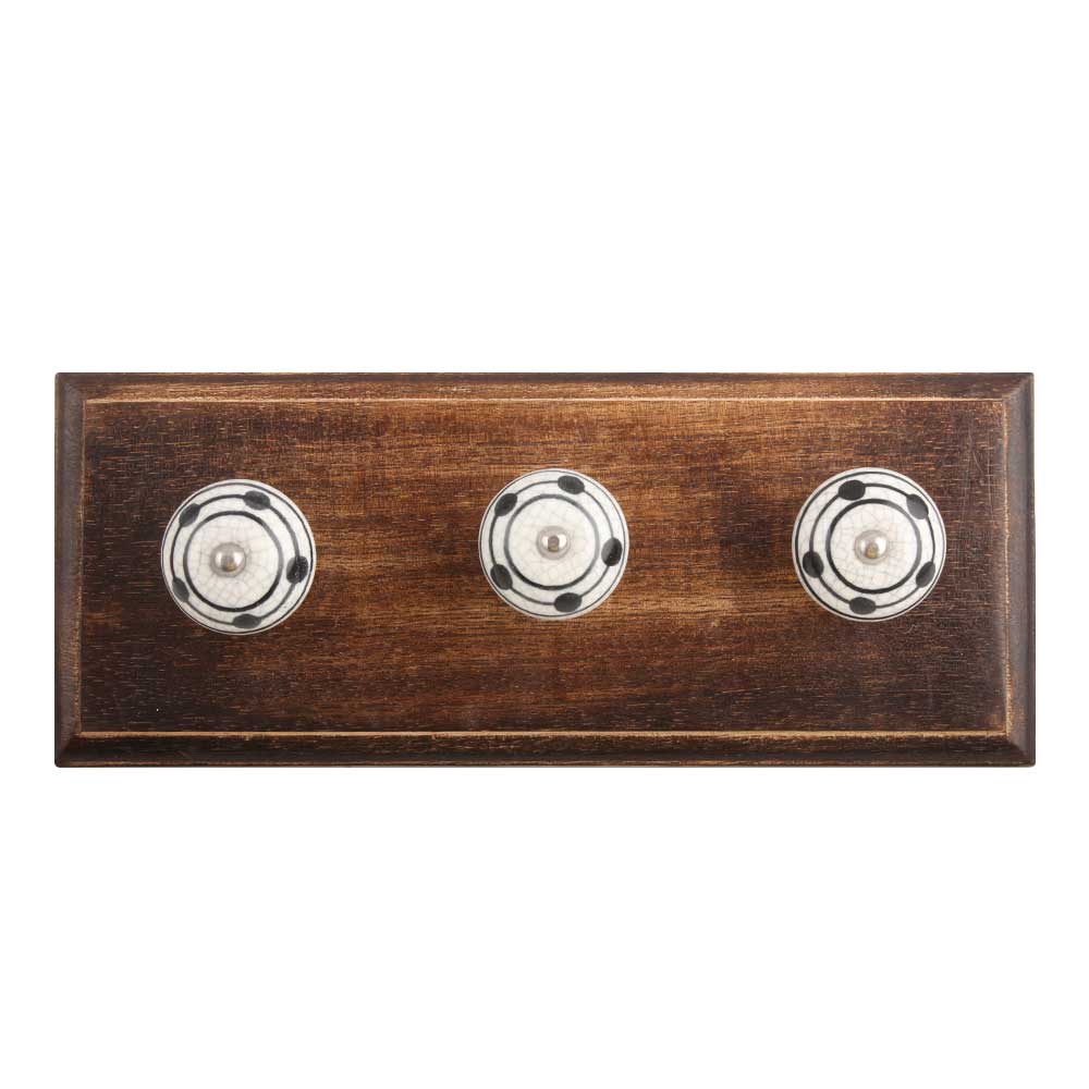 Black Striped Dotted Crackle Ceramic Wooden Hook. A Perfect Complement to the Soft Tone of the Wood are these White Traditional Hat & Coat Hook Made of Genuine Porcelain and Brass. It can be use to Hang Jewellery, Leashes, Towels, Scarves, Light Weight Sweaters, Caps Etc.