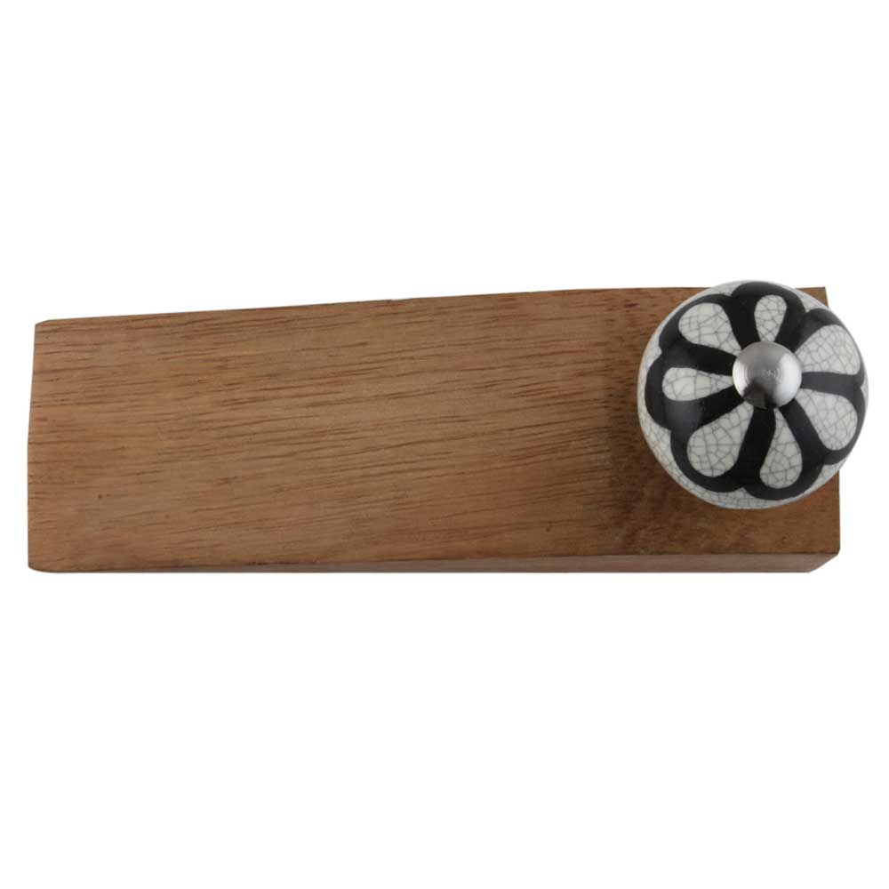 Handmade Ceramic and Wooden Door Stopper.Wooden Door Stopper with a Ceramic Knob to Carry it Easily. This Wooden Door Stopper has Glue Dots under it to Ensure that it does not Slip. It is Handmade by the Craftsmen of India and this Innovative Door Stopper won't Disappoint You.