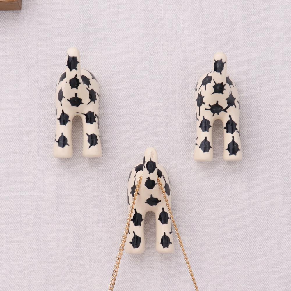 Black White Ceramic Dog Tail Shaped Wall Hooks Set of 3. This Hook is Strong Enough to Hold Your Cloths, Keys, Tea Cups, Coffee Mugs, Hand Towels Etc.