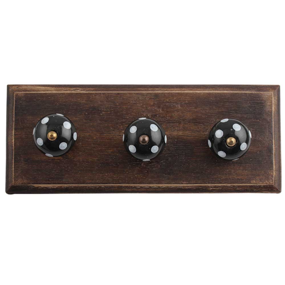 Black White Dot Wooden Hooks . A Perfect Complement to the Soft Tone of the Wood are these White Traditional Hat &Amp; Coat Hook Made of Genuine Porcelain and Brass. It can be use to Hang Jewellery, Leashes, Towels, Scarves, Light Weight Sweaters, Caps Etc.