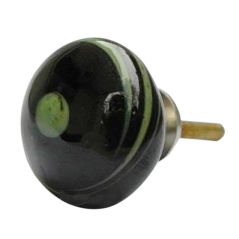 Black with Green Striped Glass Knobs. Ideal for Drawer, Dresser, Cabinet, Wardrobe, Cupboard and Almirah.