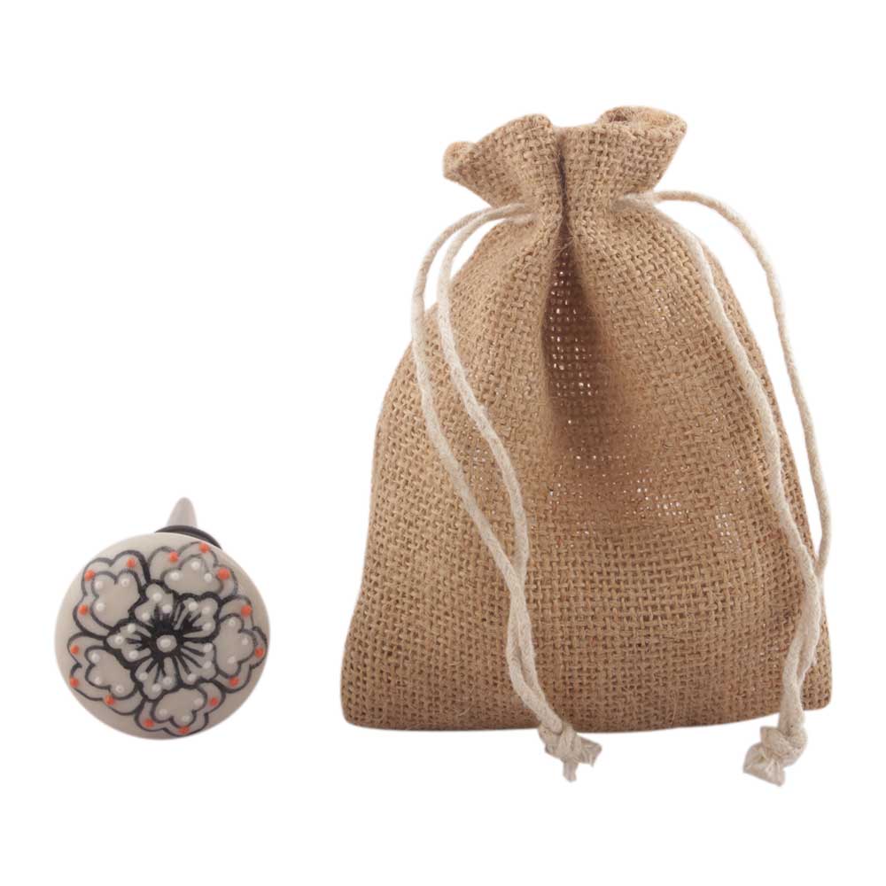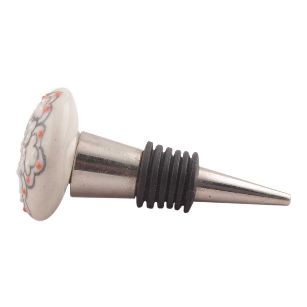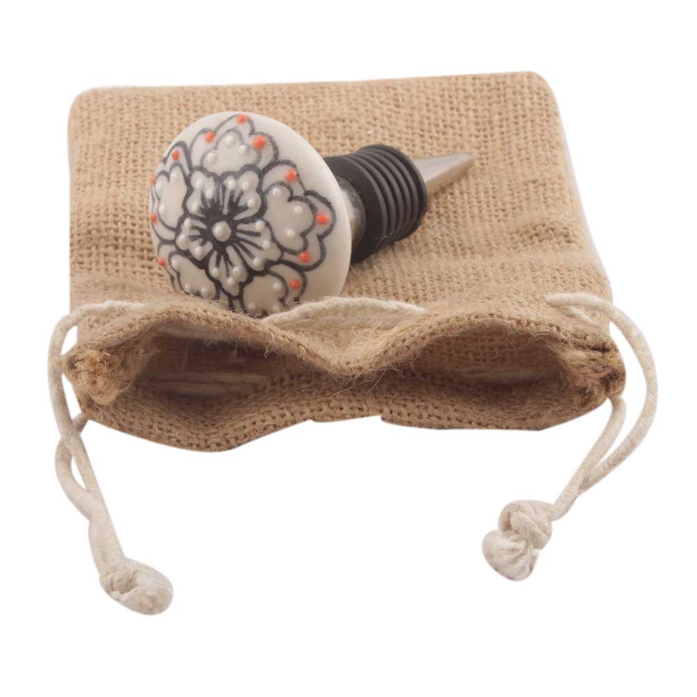 Black With Pink Dotted Ceramic Wine Stopper. Zinc Alloy Wine Bottle Stopper with Attractive Jute Bag Packaging.