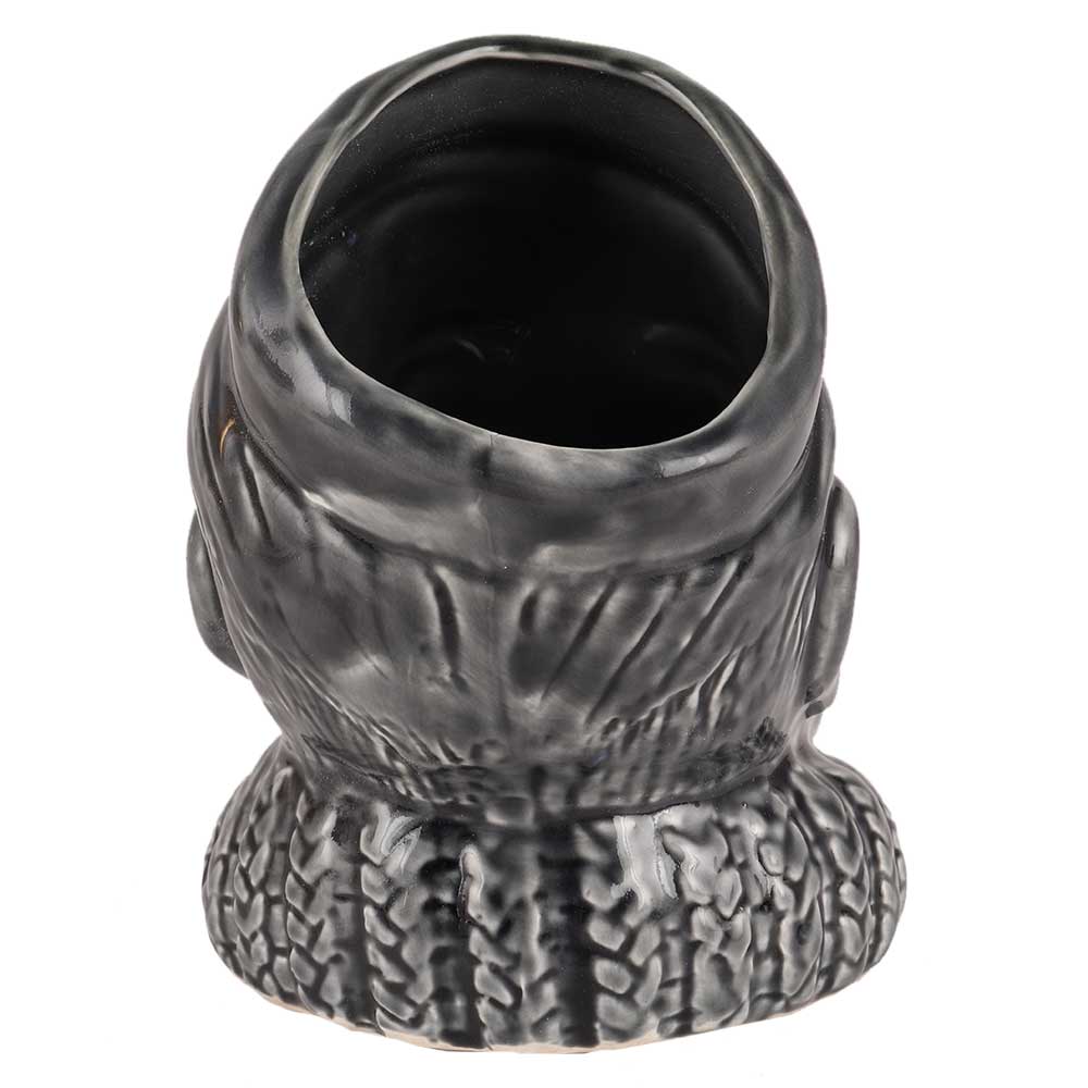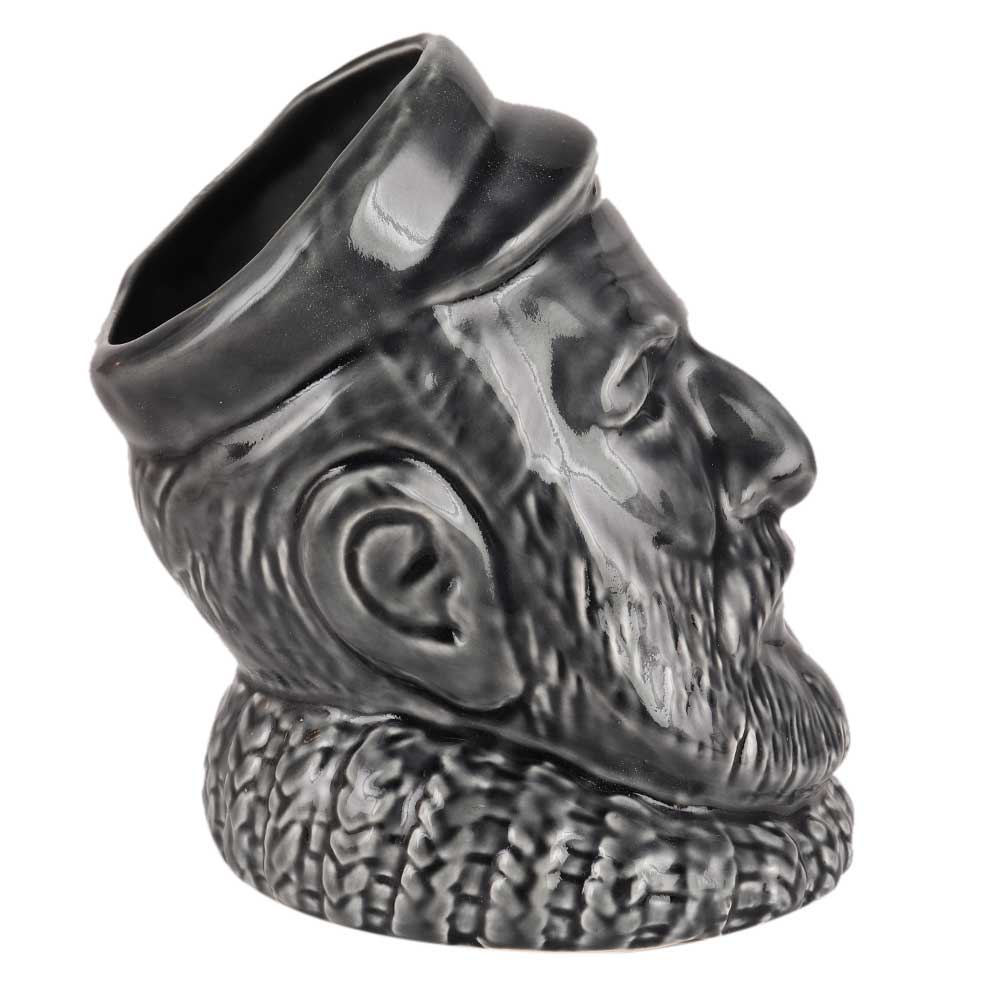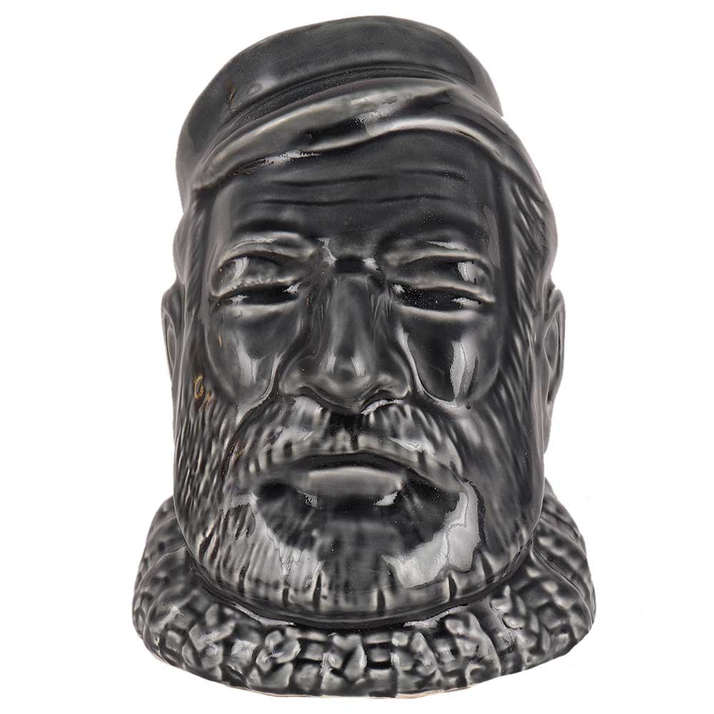 This statue is modeled after Ernest Hemingway, who is dressed in a cap and a thick nautical-style sweater. Glazed in a dark blue glaze (petrol blue). The pullover, in particular, matches the one worn by Hemingway in a shot taken by renowned portrait photographer , which is one of the most iconic images of Ernest Hemingway.