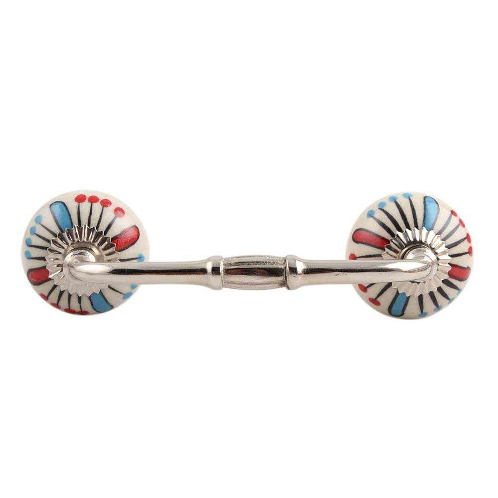 Blue and Red Ceramic Bridge Handle. Ideal for Drawer, Dresser, Cabinet, Wardrobe, Cupboard and Almirah.