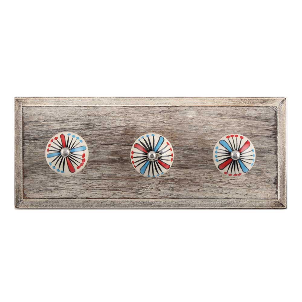 Blue and Red Ceramic Wooden Hook. A Perfect Complement to the Soft Tone of the Wood are these White Traditional Hat & Coat Hook Made of Genuine Porcelain and Brass. It can be use to Hang Jewellery, Leashes, Towels, Scarves, Light Weight Sweaters, Caps Etc.