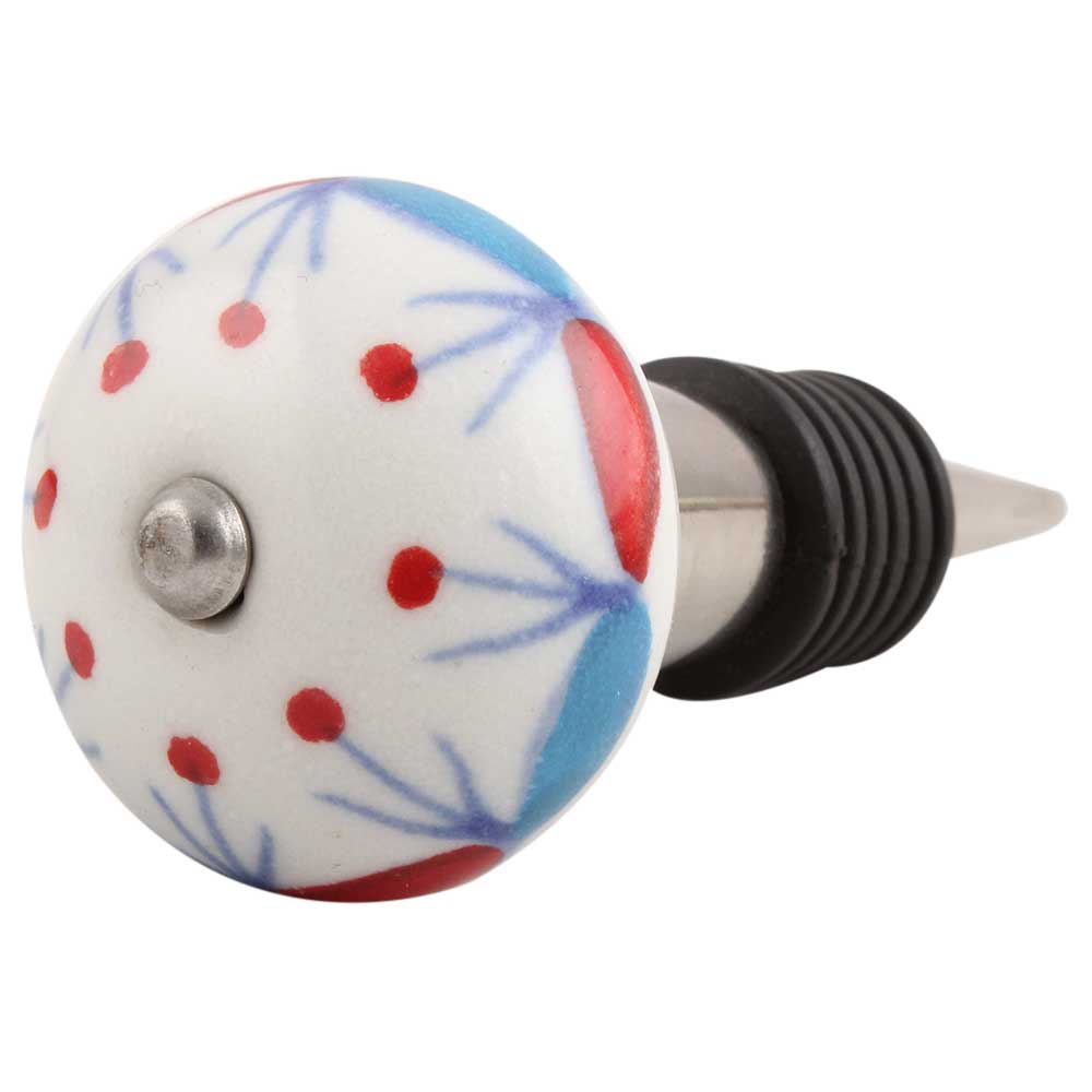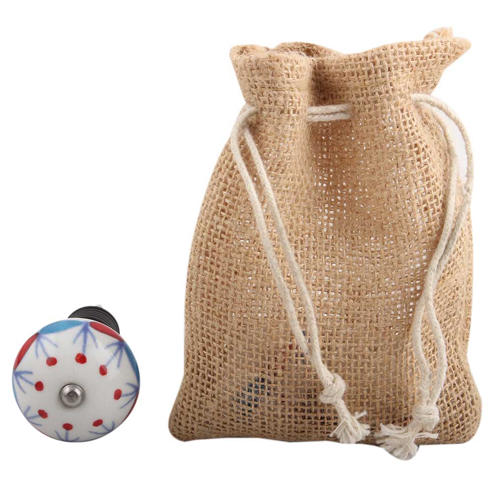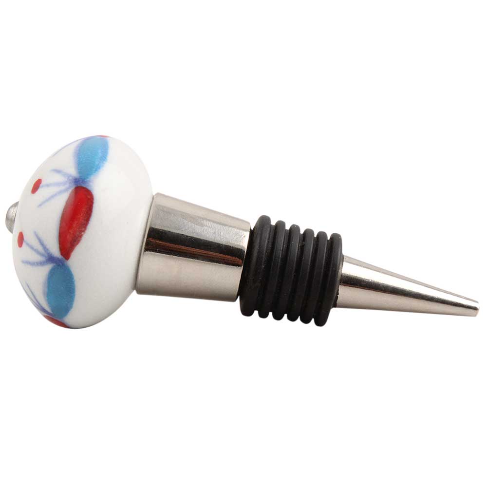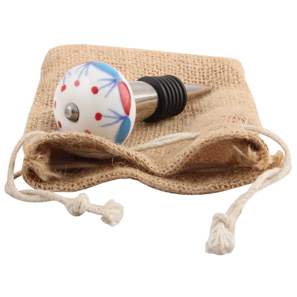 Blue And Red Design Ceramic Wine Stopper.zinc alloy wine bottle stopper with attractive Jute Bag Packaging.