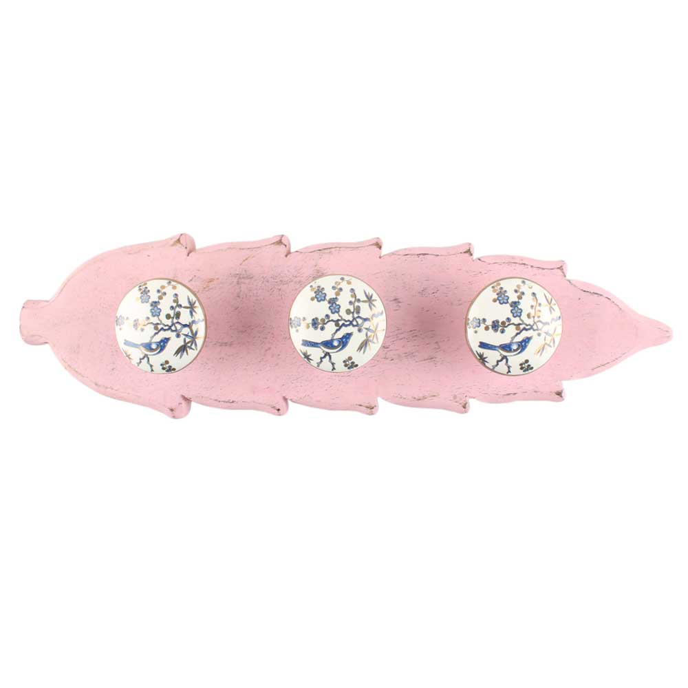 Blue Bird Golden Berry Ceramic Wooden Hook in Pink. A Perfect Complement to the Soft Tone of the Wood are these White Traditional Hat and Coat Hook Made of Genuine Porcelain. It can be use to Hang Jewellery, Leashes, Towels, Scarves, Light Weight Sweaters, Caps etc.