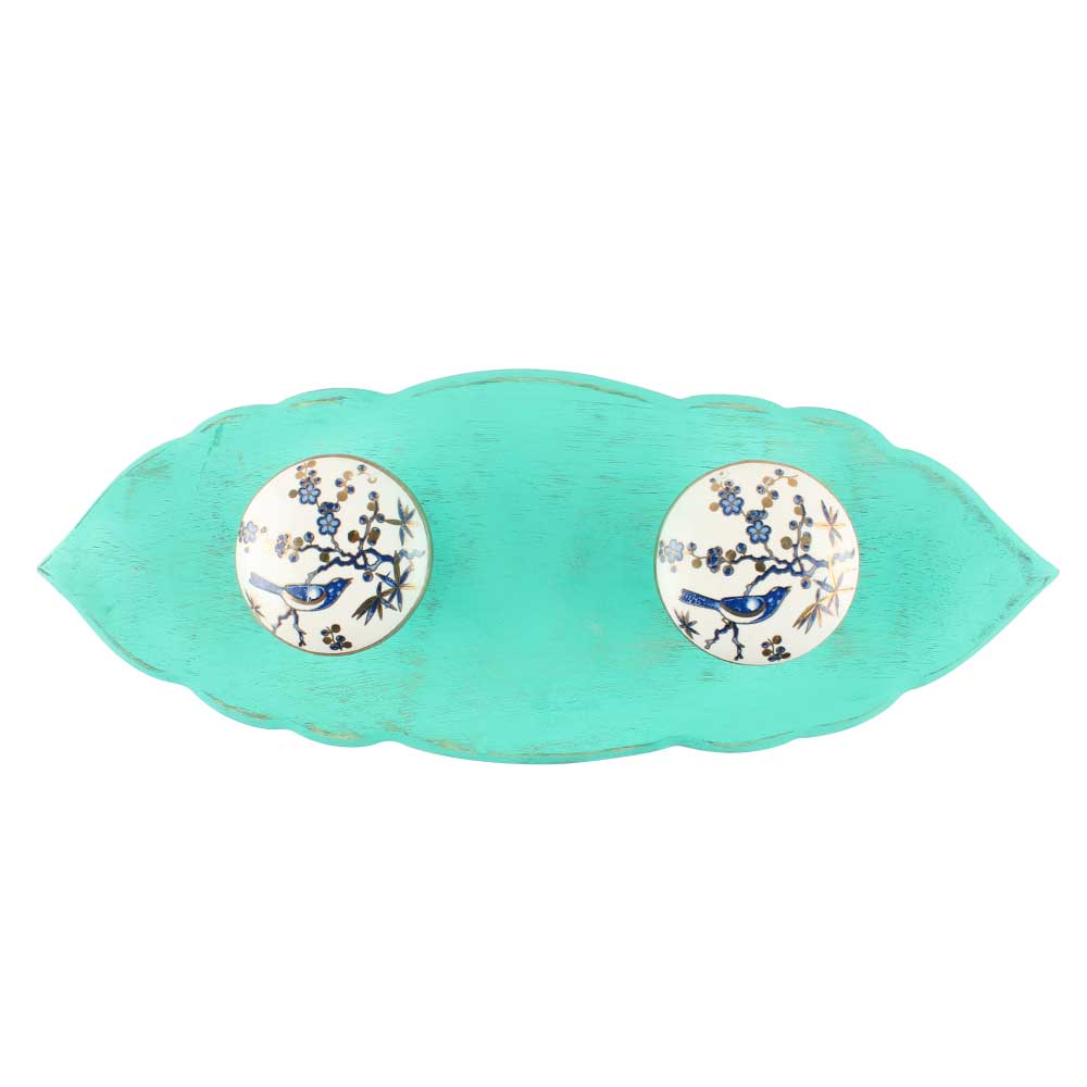 Blue Bird Golden Berry Ceramic Wooden Hook in Sage Green. A Perfect Complement to the Soft Tone of the Wood are these White Traditional Hat and Coat Hook Made of Genuine Porcelain. It can be use to Hang Jewellery, Leashes, Towels, Scarves, Light Weight Sweaters, Caps etc.