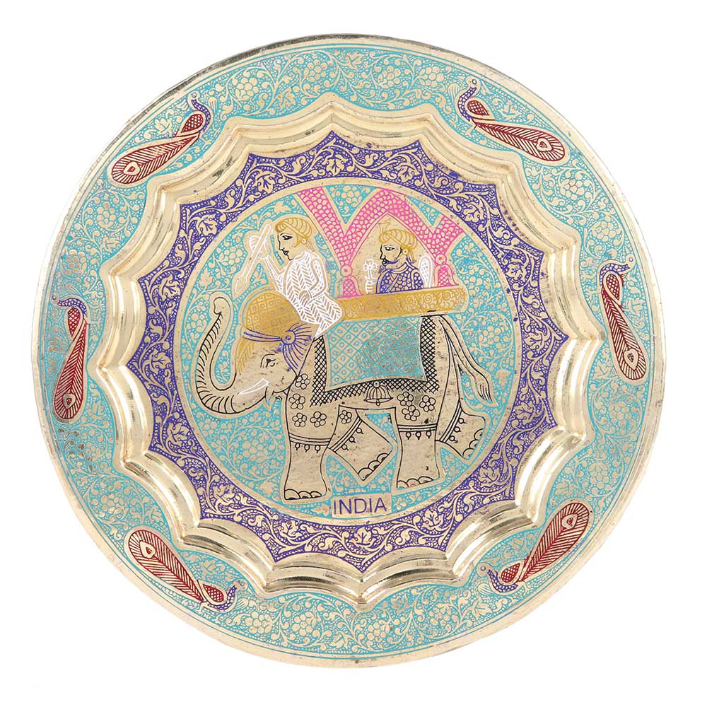 The elephant rider with king adorned brass ornamental tray showcases exquisite artwork, intricacy, and designs inspired by natural Rajasthan elements. Best selection for both corporate and personal gift ideas.