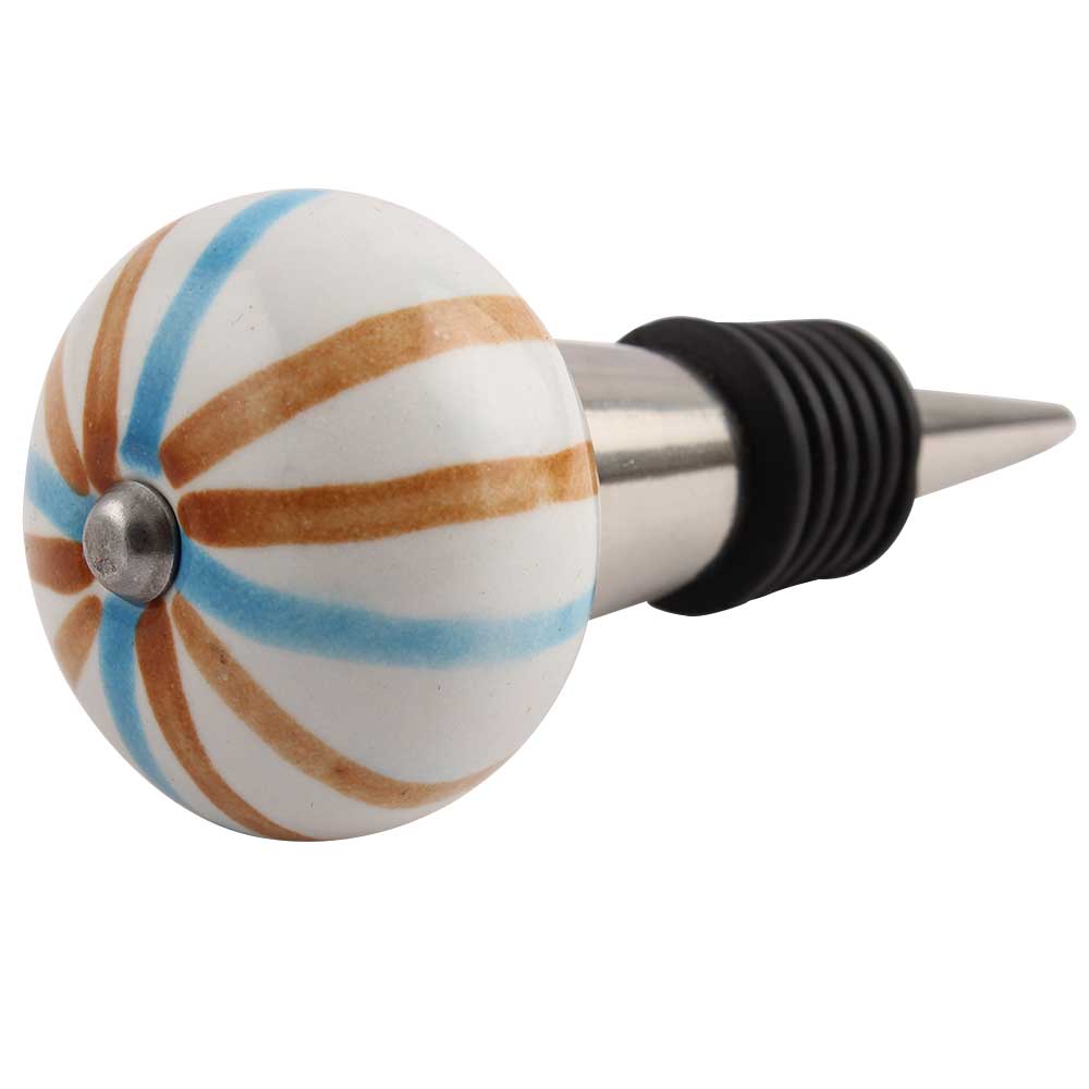 Blue Brown Rays Ceramic Wine Stopper.zinc alloy wine bottle stopper with attractive Jute Bag Packaging.