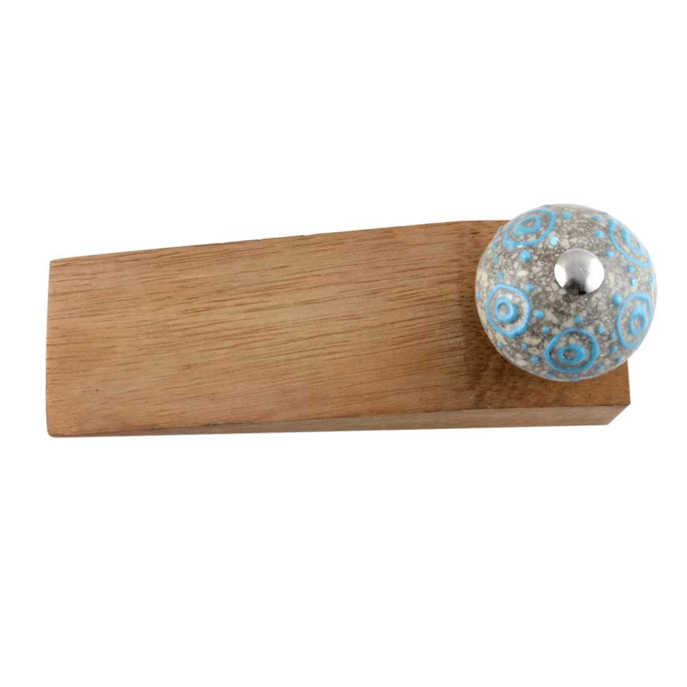 Handmade Ceramic and Wooden Door Stopper.Wooden Door Stopper with a Ceramic Knob to Carry it Easily. This Wooden Door Stopper has Glue Dots under it to Ensure that it does not Slip. It is Handmade by the Craftsmen of India and this Innovative Door Stopper won't Disappoint You.