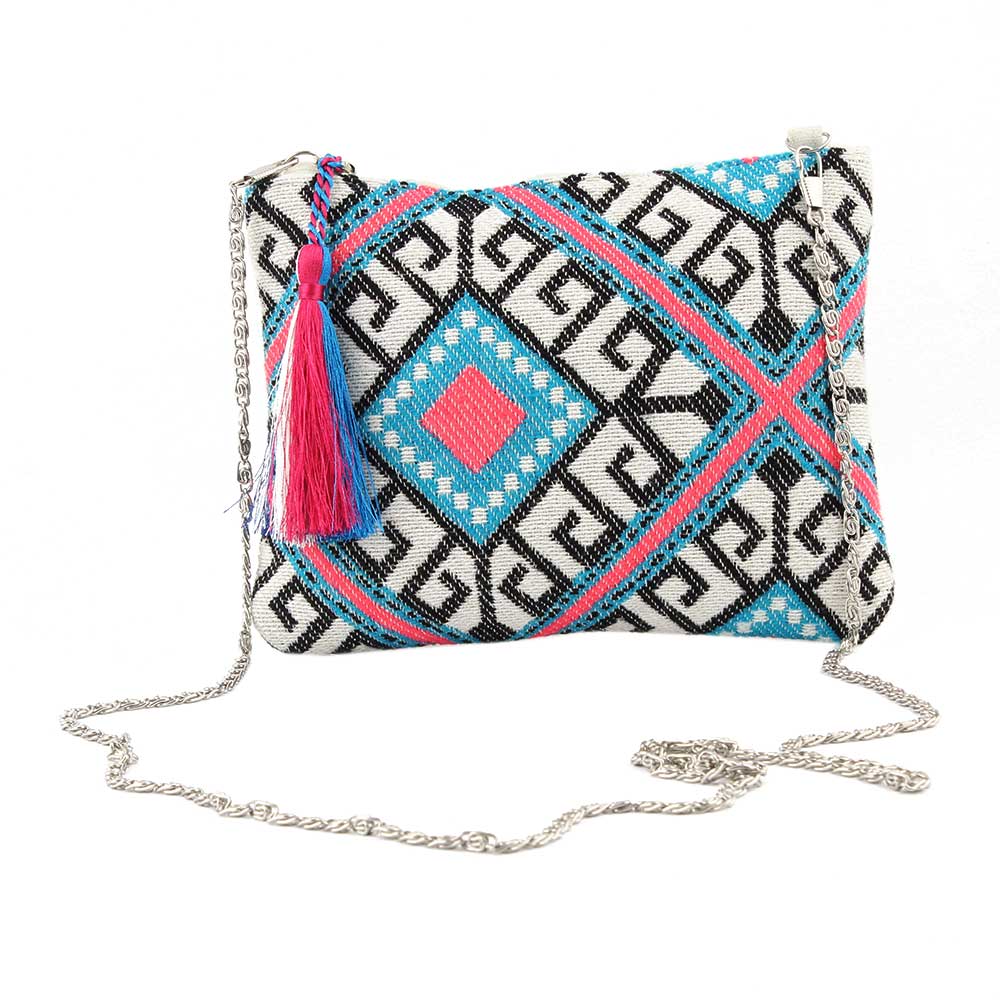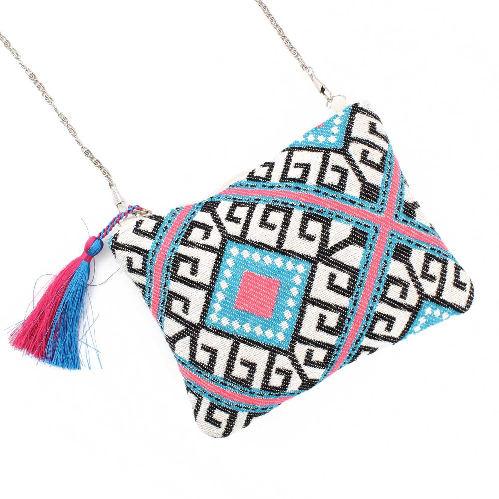 Adorn your outfits with the blue color splash tassels jacquard sling bag. It is a perfect pick for daily use and goes well with your casual attires.