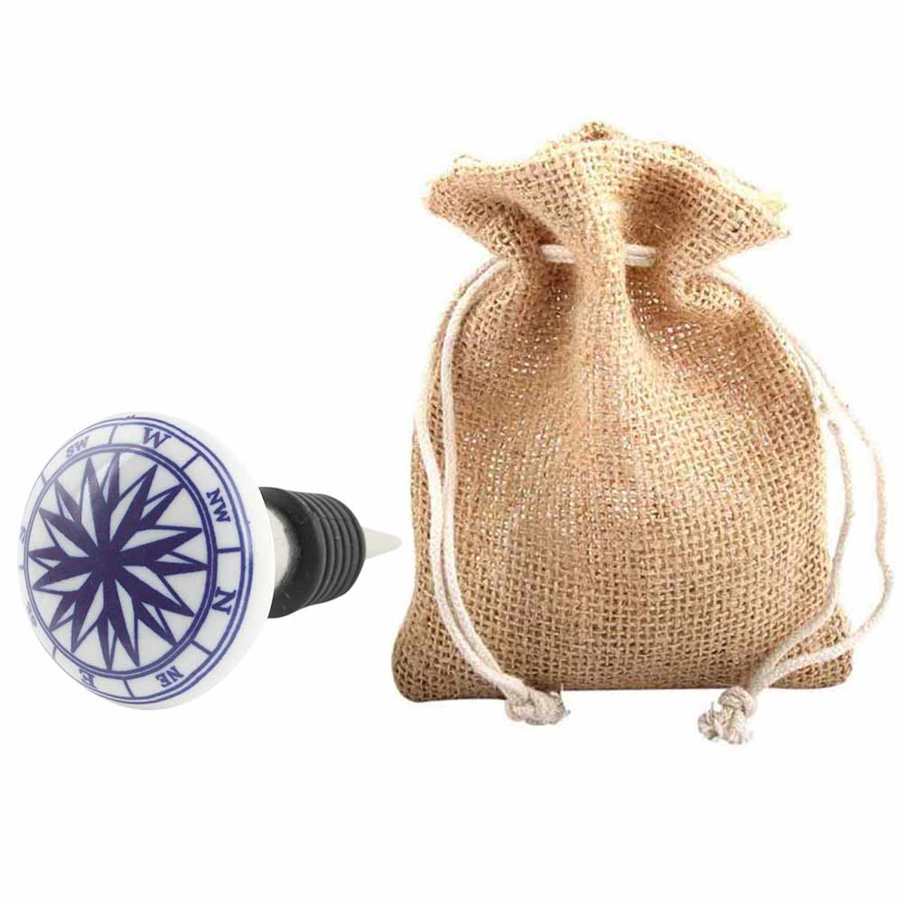 Blue Compass Wine Bottle Stopper. Zinc Alloy Wine Bottle Stopper with Attractive Jute Bag Packaging.