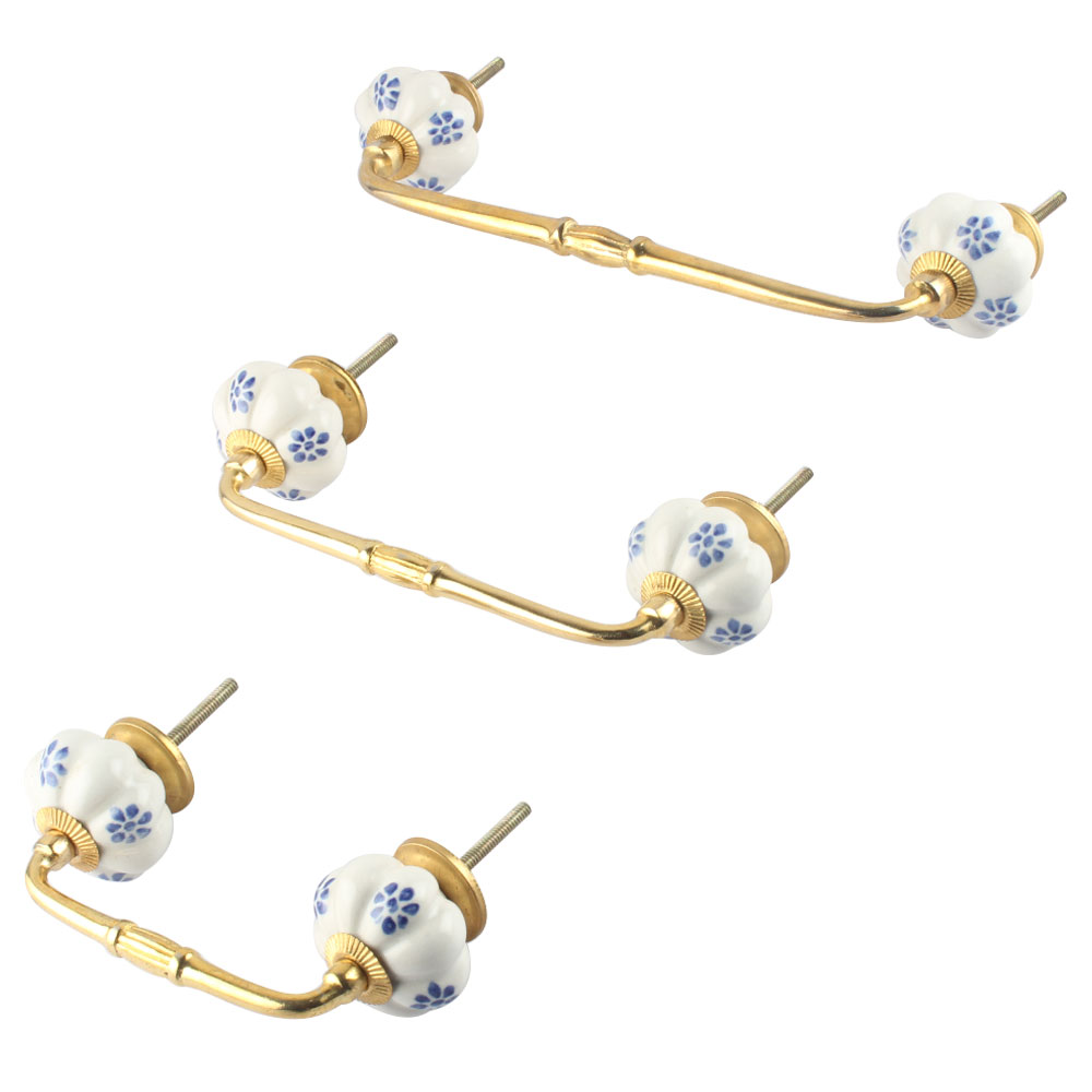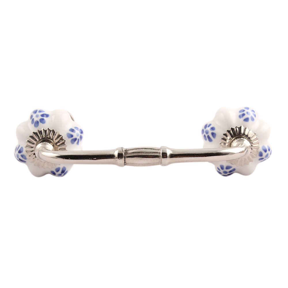 Blue Dahalia Medium Ceramic Bridge Handle. Ideal for Drawer, Dresser, Cabinet, Wardrobe, Cupboard and Almirah.