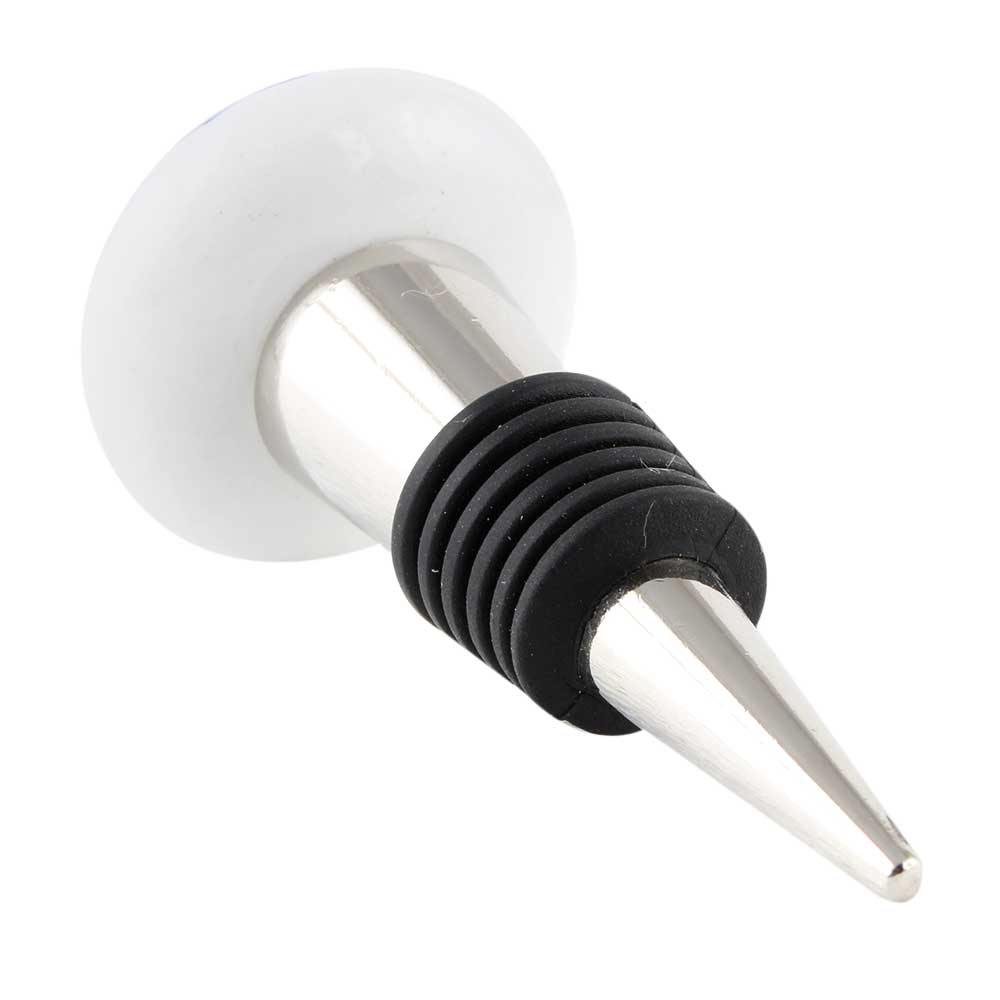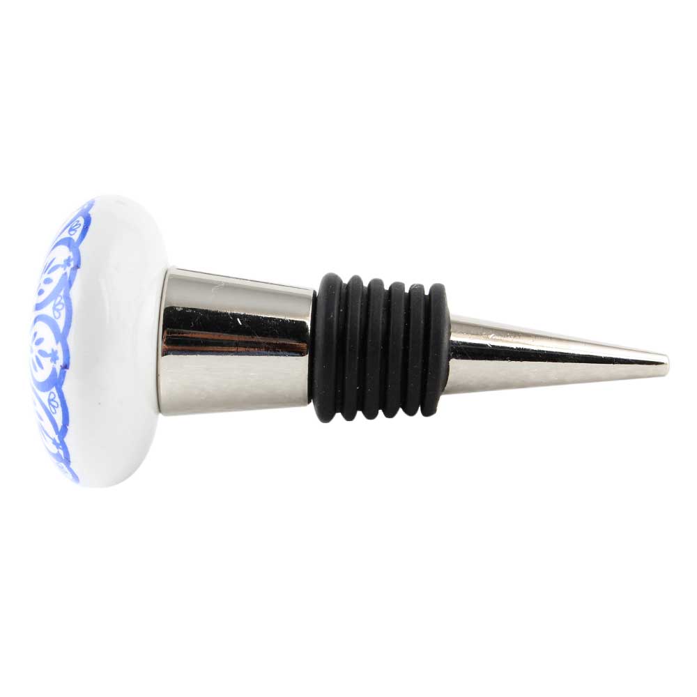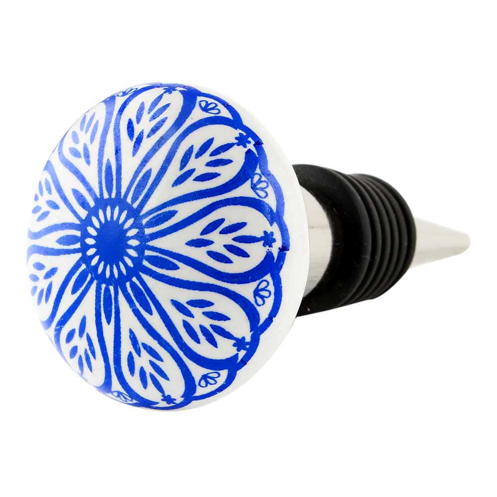 Blue Daisy Flat Ceramic Wine Bottle Stopper. Zinc Alloy Wine Bottle Stopper with Attractive Jute Bag Packaging.