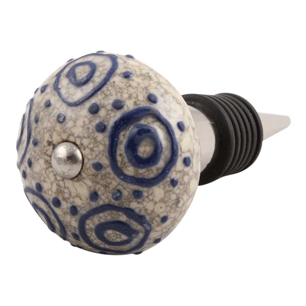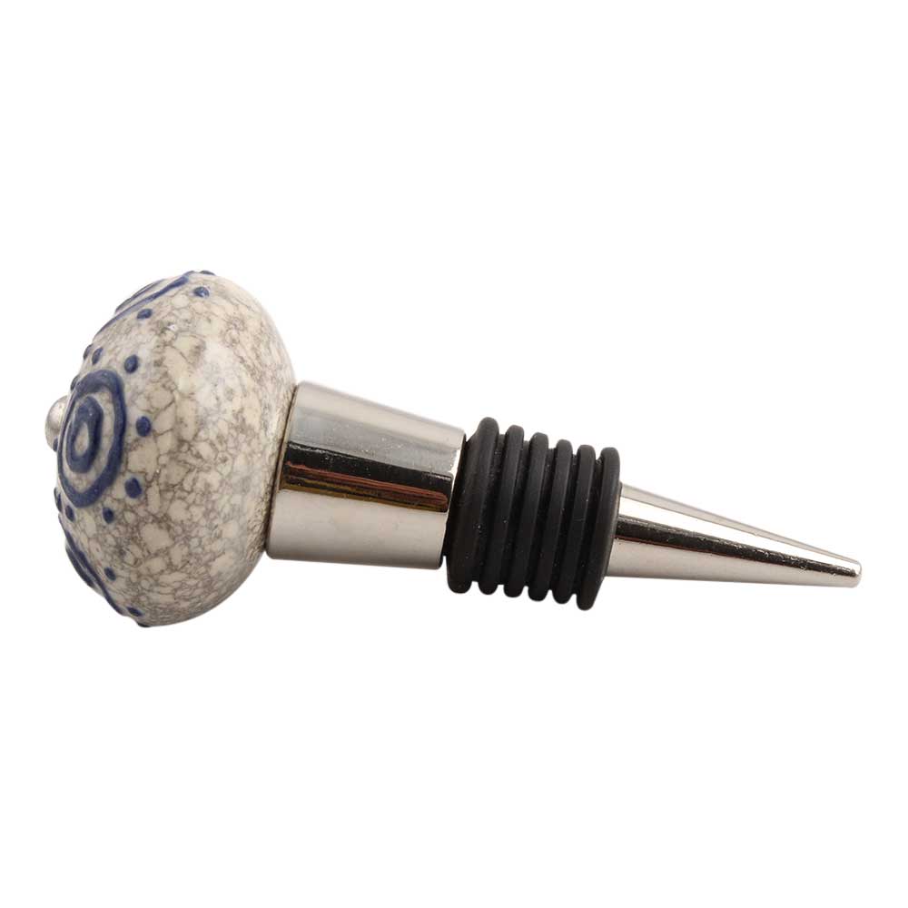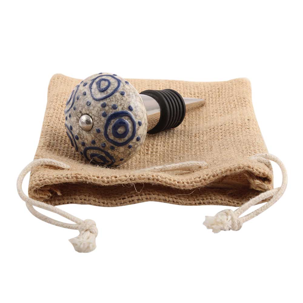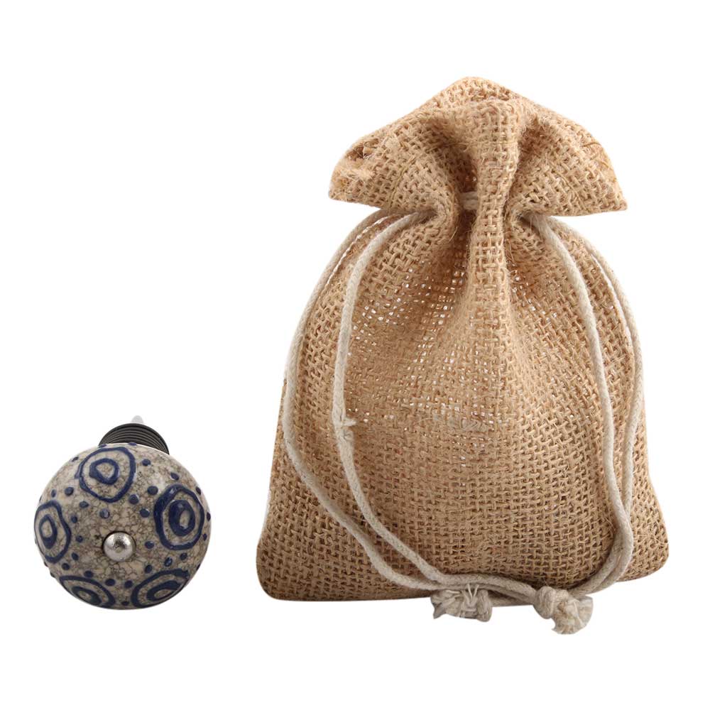Blue Decorative Crackle Ceramic Wine Stopper. Zinc Alloy Wine Bottle Stopper with Attractive Jute Bag Packaging.