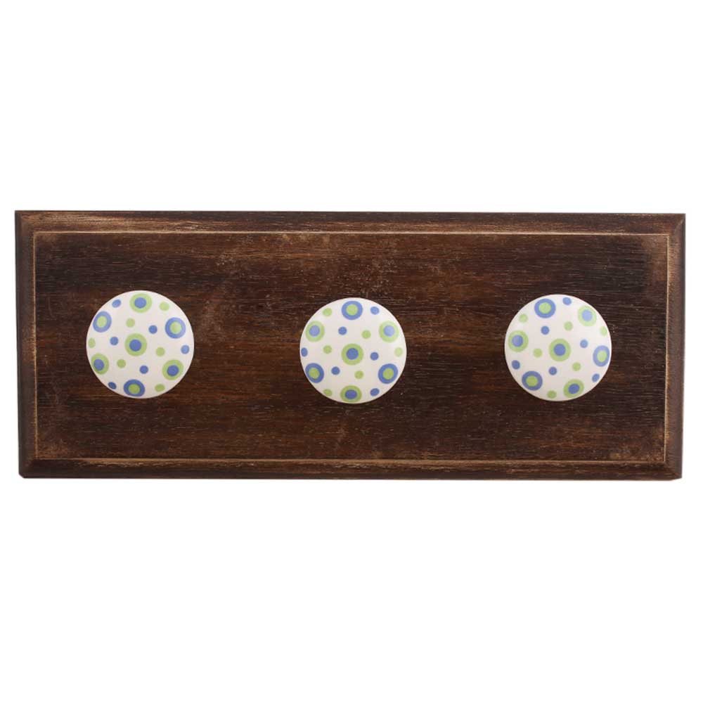 Blue Dot Ceramic Wooden Hook. A Perfect Complement to the Soft Tone of the Wood are these White Traditional Hat &Amp; Coat Hook Made of Genuine Porcelain and Brass. It can be use to Hang Jewellery, Leashes, Towels, Scarves, Light Weight Sweaters, Caps Etc.