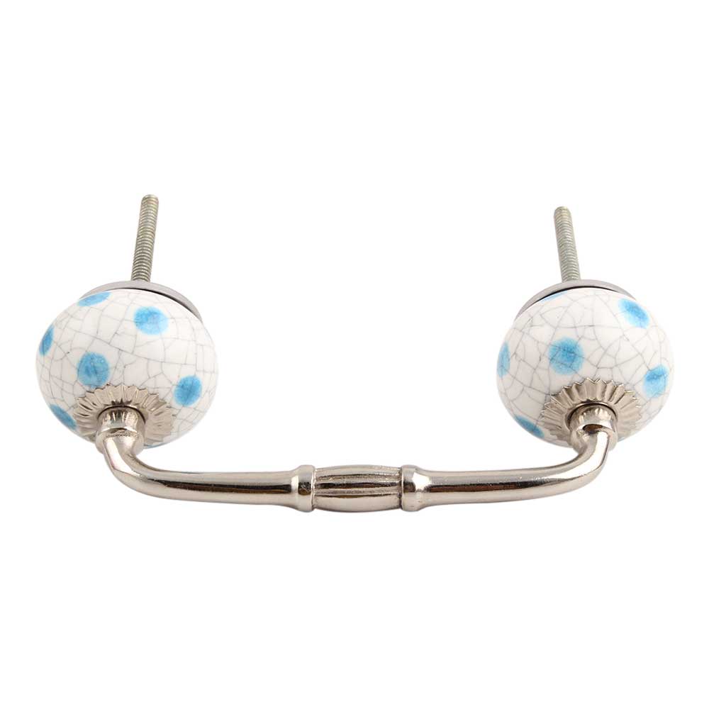 Blue Dotted Cackle Ceramic Bridge Handle. Ideal for Drawer, Dresser, Cabinet, Wardrobe, Cupboard and Almirah.