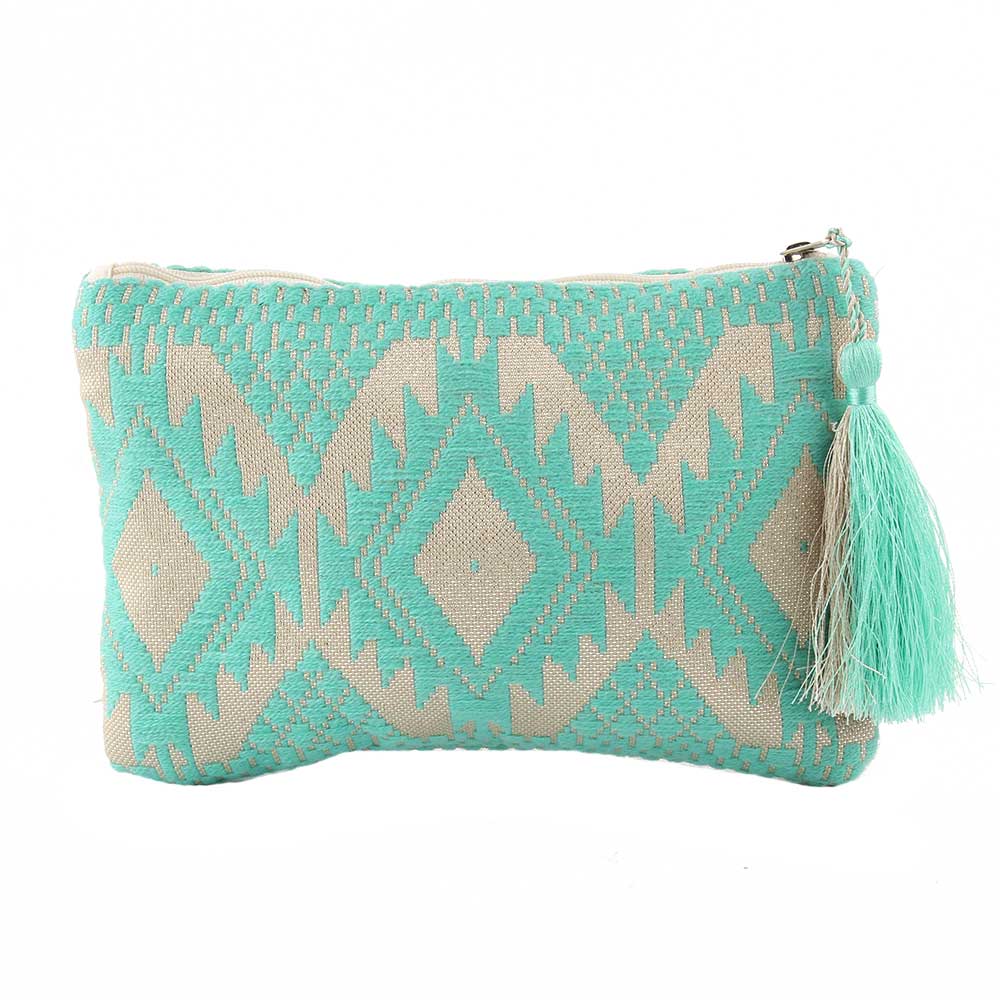 This blue emboidered clutch bag ,wallet ,make-up bag is exactly the right size to accommodate your essentials on the move; this basic and utilitarian bag is big enough to fit your credit cards, cash, coins, and lip gloss.