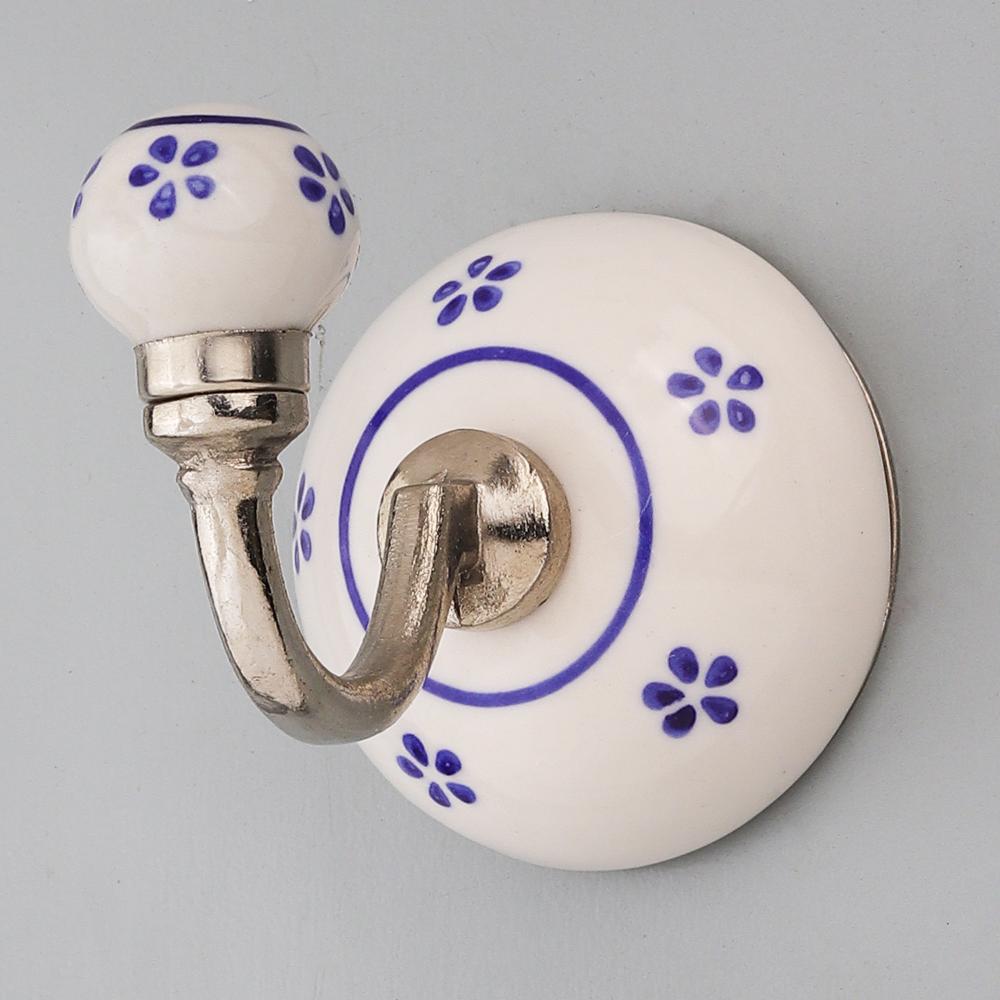 Blue Floral Ceramic Hooks. When Put on Wall or Cabinet It is An Art in Itself. This Hook is Strong Enough to Hold Your Cloths, Keys, Tea Cups, Coffee Mugs, Hand Towels Etc.