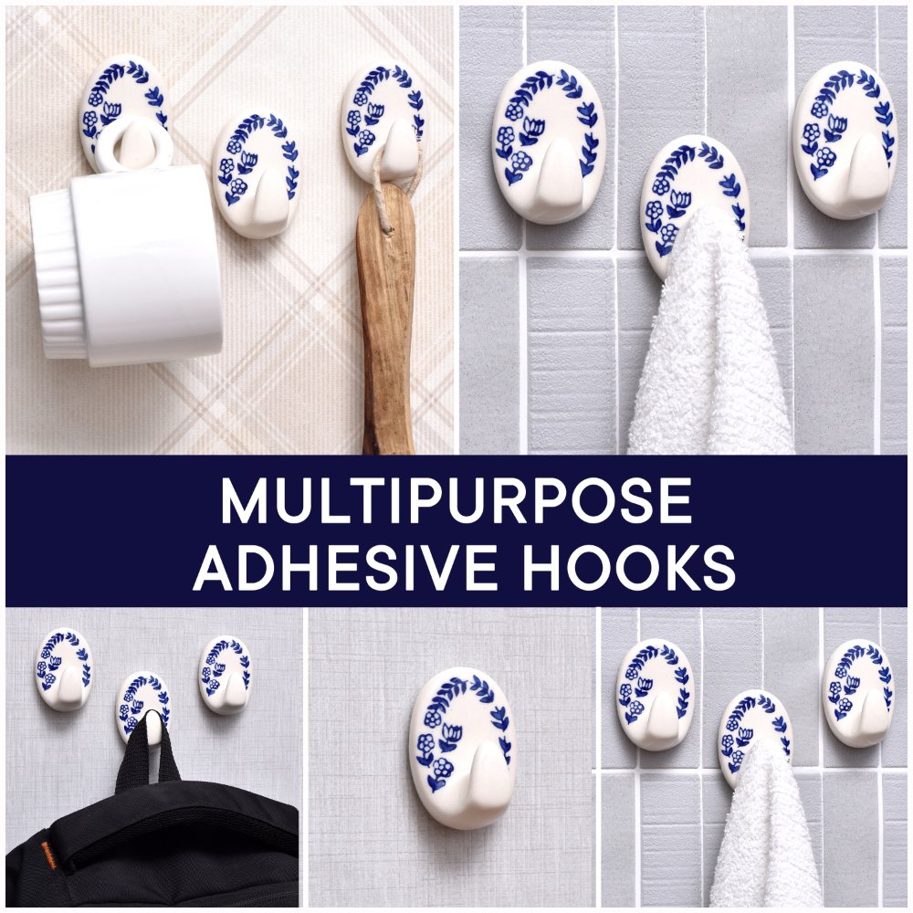 Say goodbye to drilling holes and making a mess in your walls. The Blue Floral Ceramic No Drill Adhesive Wall Hook comes with a powerful adhesive backing that allows for a quick and easy installation. Simply peel off the protective film and stick the hook to a clean, smooth surface—no tools required!