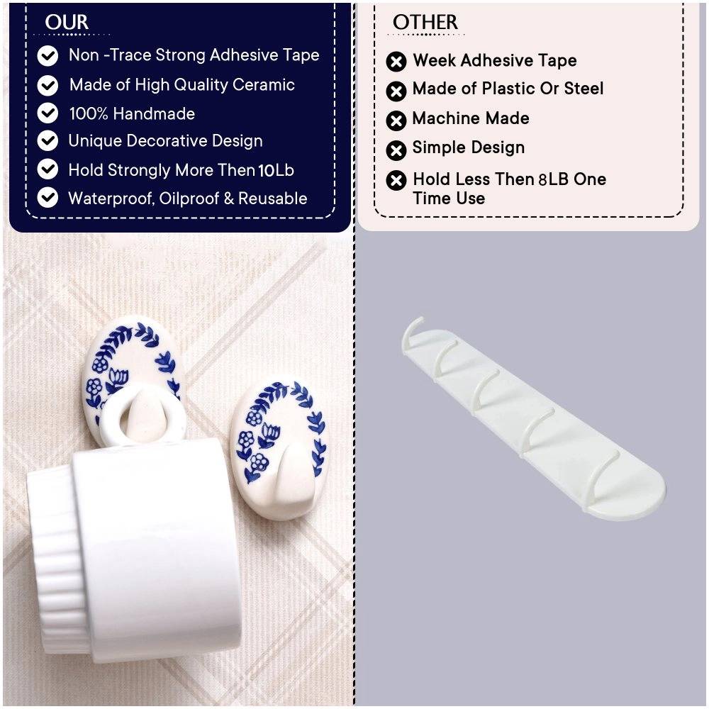 The Blue Floral Ceramic No Drill Adhesive Wall Hook combines elegant design and practicality in one. This charming hook features a beautiful blue floral ceramic design, perfect for enhancing the décor in any room while providing a convenient place to hang your items. With its no-drill adhesive installation, this hook is an easy, damage-free solution for keeping your space organized and tidy.