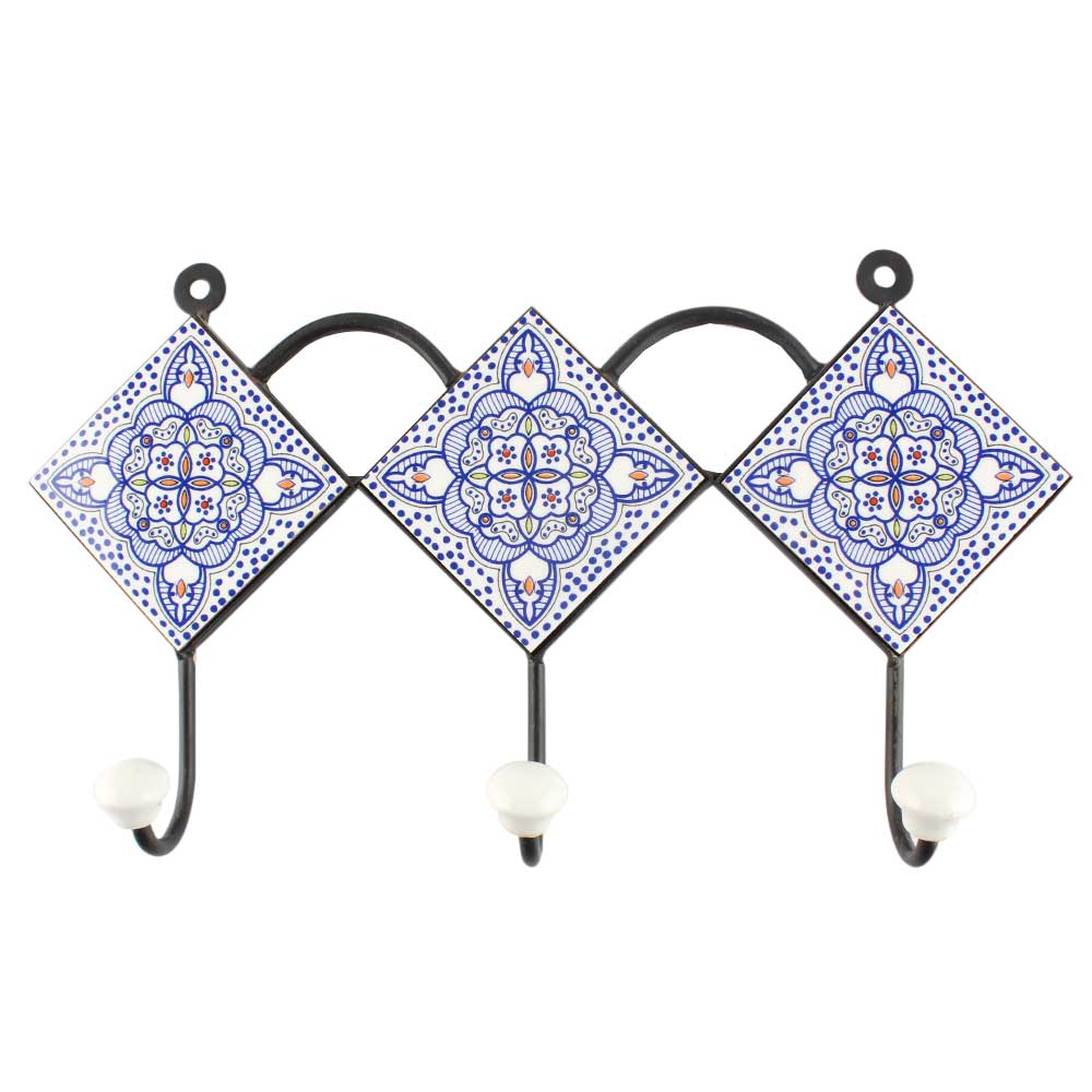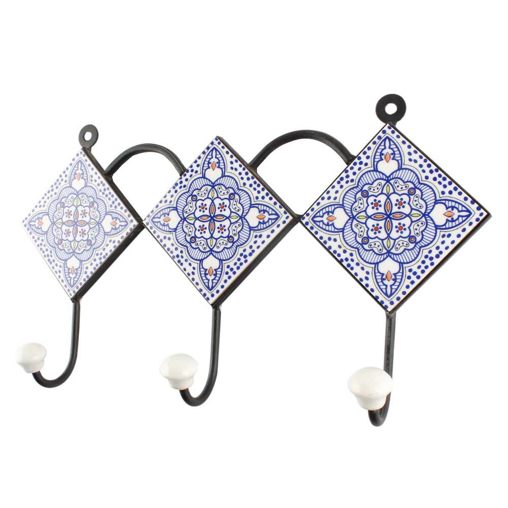 Blue Floral Ceramic Wall Hook Online. When Put on Wall or Cabinet It is An Art in Itself. The Metal Part of this Hook is Black Powder Coated.