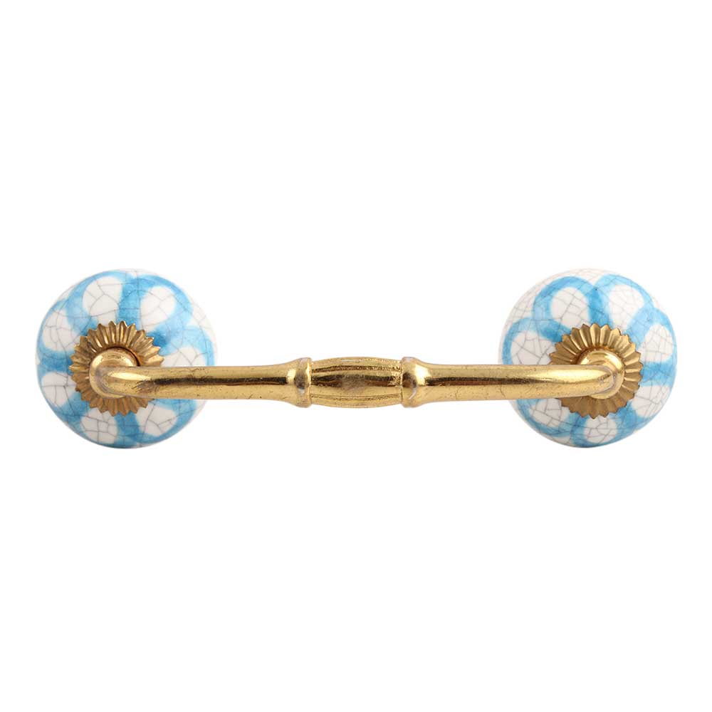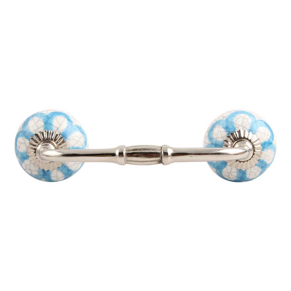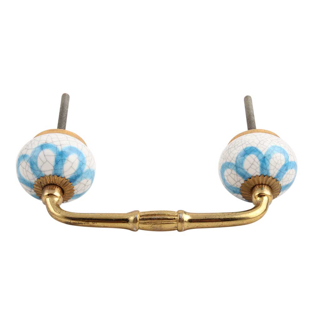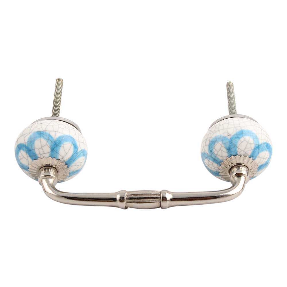 Blue floral Crackle Ceramic Bridge Handle. Ideal for Drawer, Dresser, Cabinet, Wardrobe, Cupboard and Almirah.