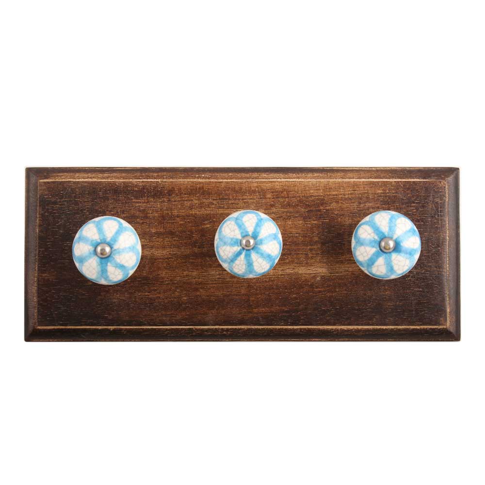 Blue Floral Crackle Ceramic Wooden Hook. A Perfect Complement to the Soft Tone of the Wood are these White Traditional Hat & Coat Hook Made of Genuine Porcelain and Brass. It can be use to Hang Jewellery, Leashes, Towels, Scarves, Light Weight Sweaters, Caps Etc.