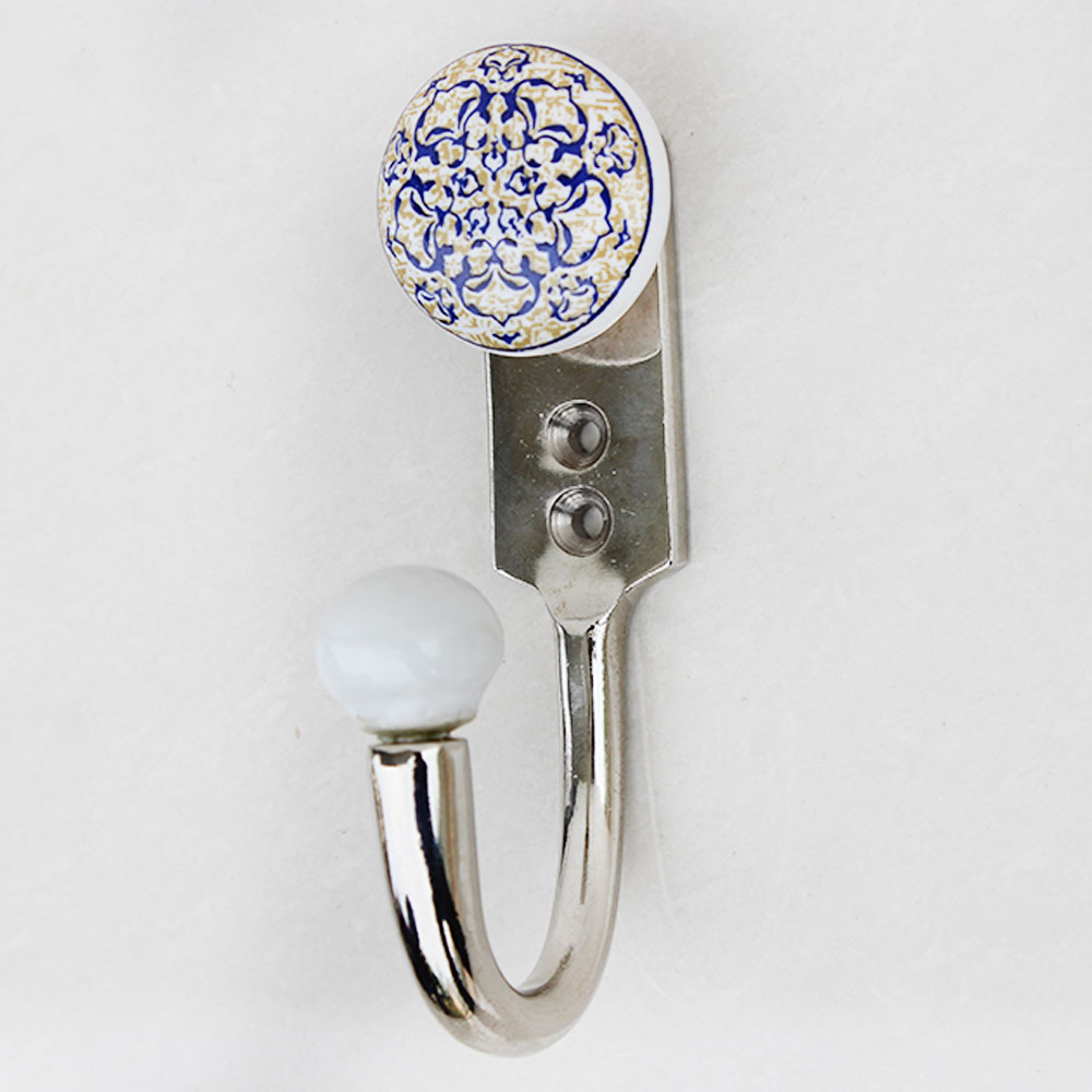 Blue Floral Flat Hook. When Put on Wall or Cabinet It is An Art in Itself. This Hook is Strong Enough to Hold Your Keys, Tea Cups, Hand Towels, Cloths Etc.