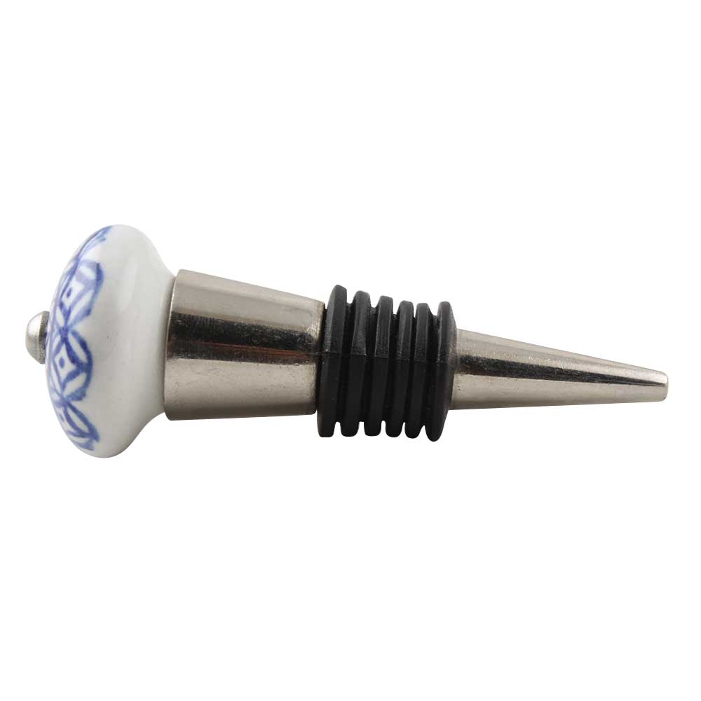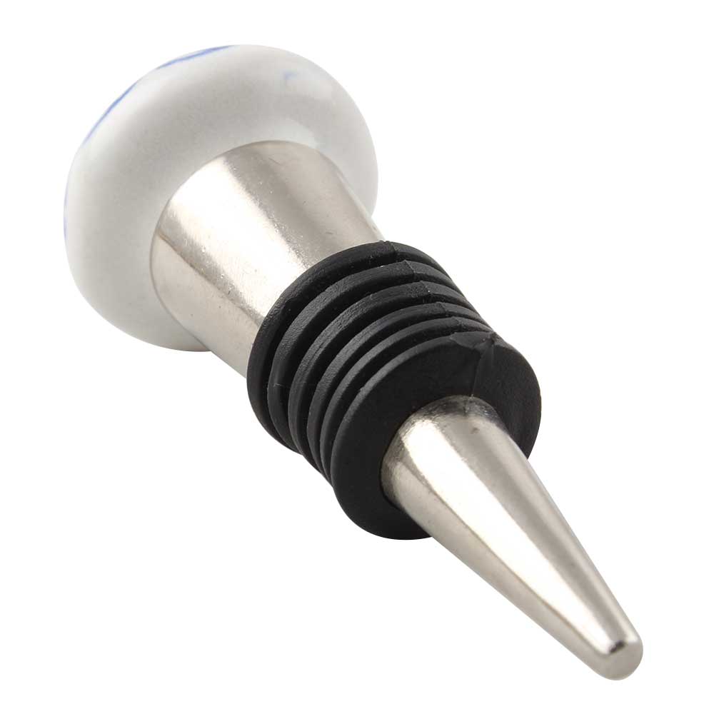Blue Flower Ceramic Floral Wine Stopper. Zinc Alloy Wine Bottle Stopper with Attractive Jute Bag Packaging.