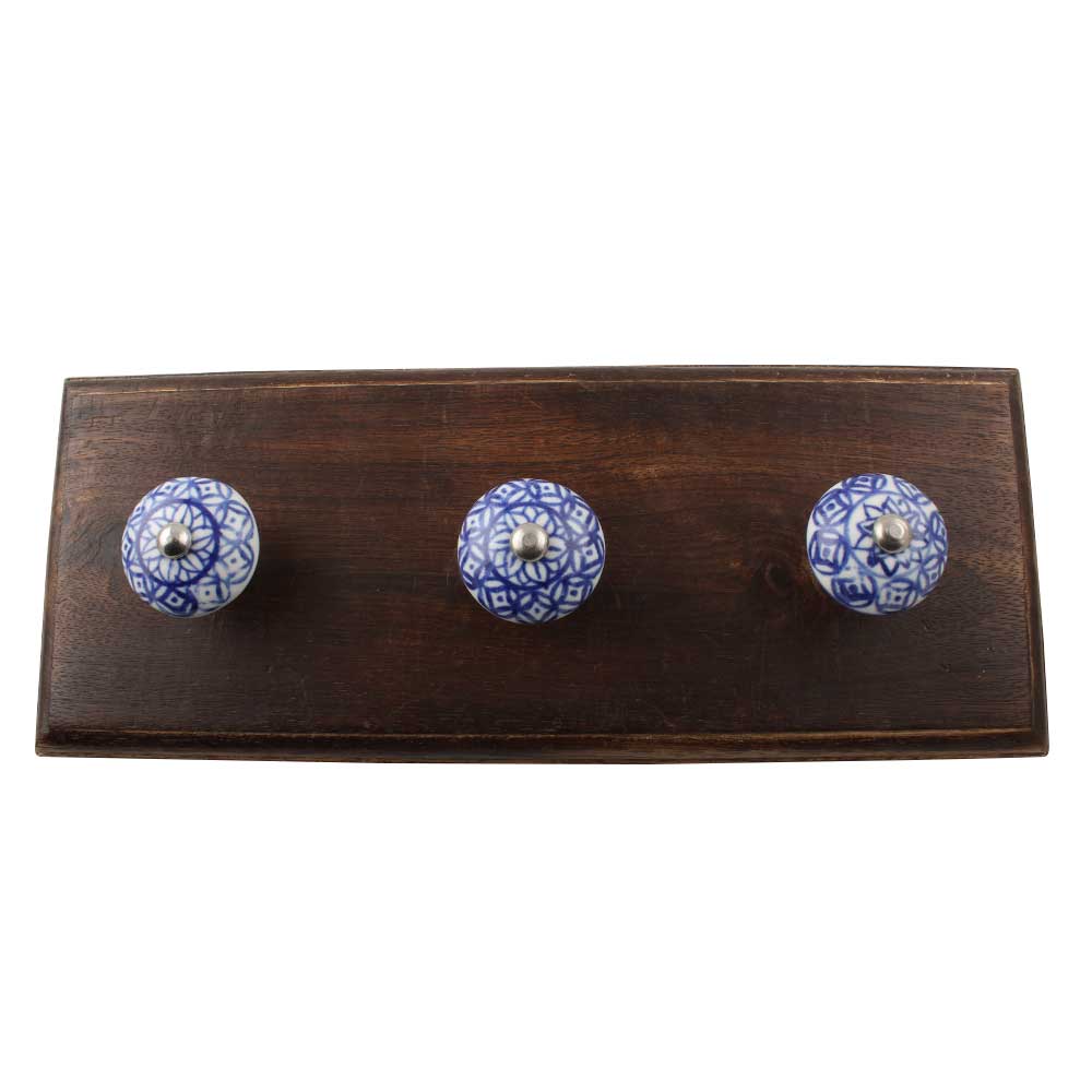 Blue Flower Ceramic Floral Wooden Hook. A Perfect Complement to the Soft Tone of the Wood are these White Traditional Hat and Coat Hook Made of Genuine Porcelain and Brass. It can be used to Hang Jewelry, Leashes, Towels, Scarves, Light Weight Sweaters, Caps etc.