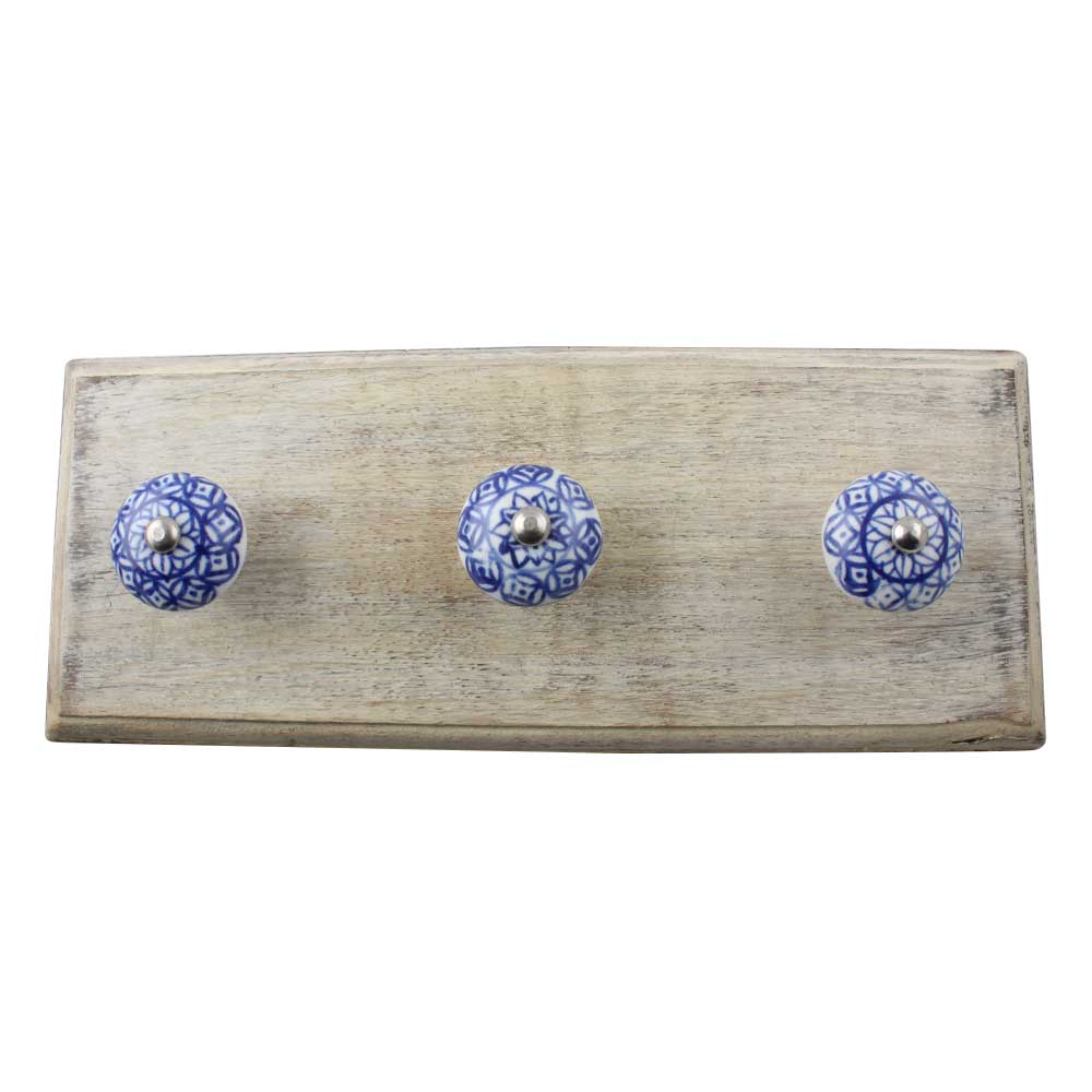 Blue Flower Ceramic Floral Wooden Hook. A Perfect Complement to the Soft Tone of the Wood are these White Traditional Hat and Coat Hook Made of Genuine Porcelain and Brass. It can be used to Hang Jewelry, Leashes, Towels, Scarves, Light Weight Sweaters, Caps etc.