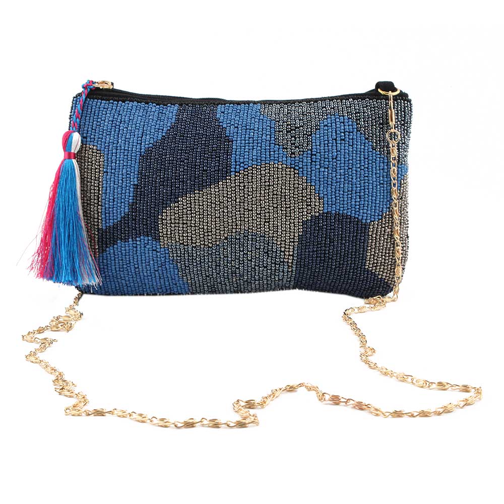 The blue glass bead and cotton ziptop clutch bag is ideal for any evening party or casual occasion. From wedding ceremonies to wedding receptions we've got you covered.