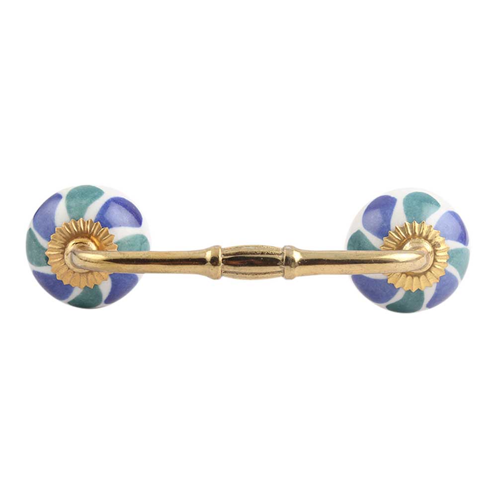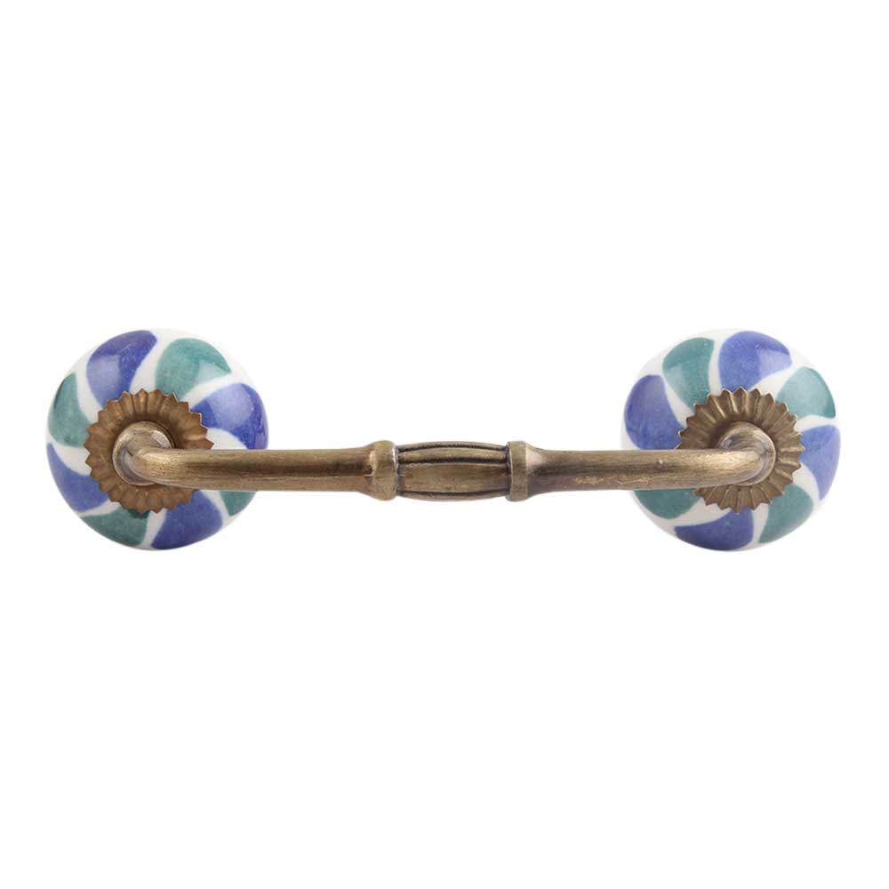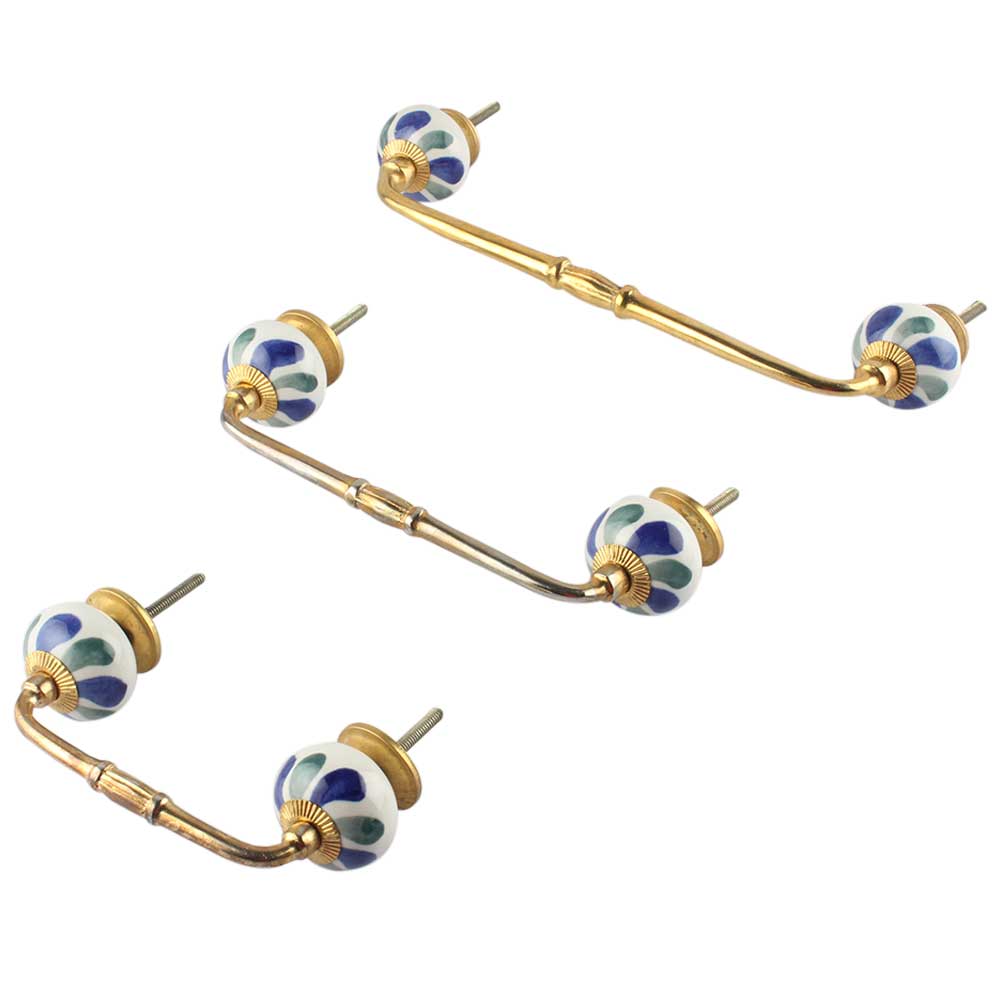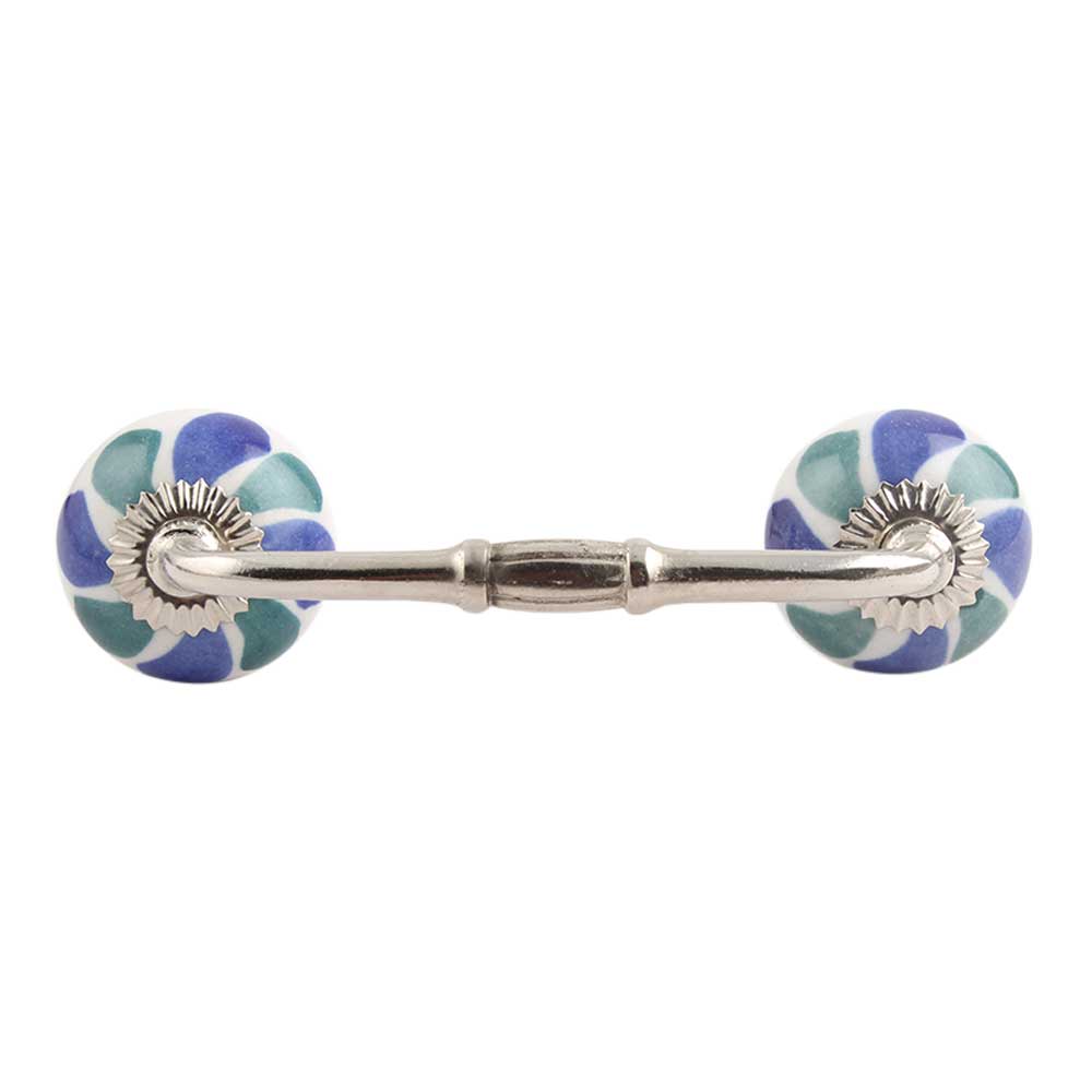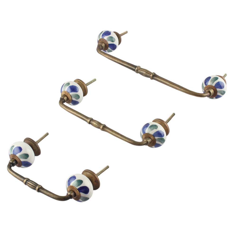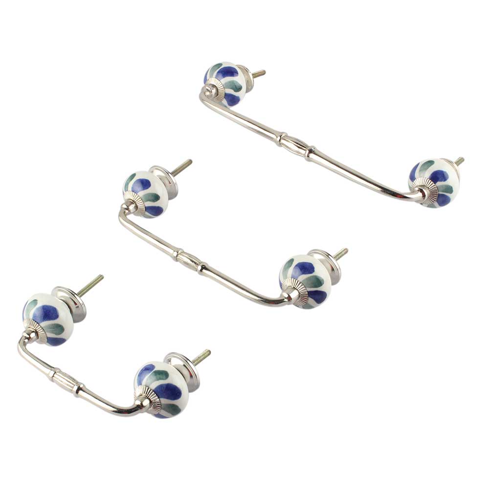 Blue Green Flower Ceramic Bridge Handle. Ideal for Drawer, Dresser, Cabinet, Wardrobe, Cupboard and Almirah.