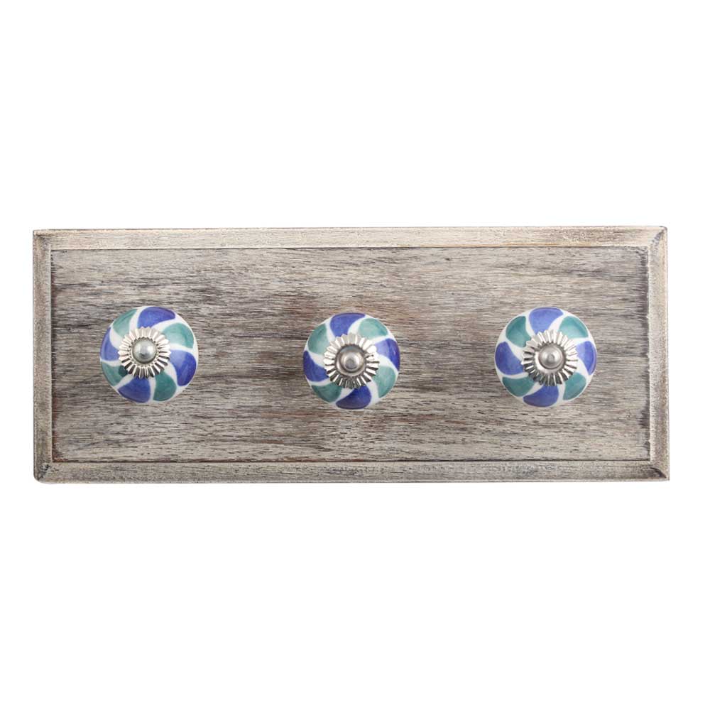 Blue Green Flower Ceramic Wooden Hook. A Perfect Complement to the Soft Tone of the Wood are these White Traditional Hat & Coat Hook Made of Genuine Porcelain and Brass. It can be use to Hang Jewellery, Leashes, Towels, Scarves, Light Weight Sweaters, Caps Etc.