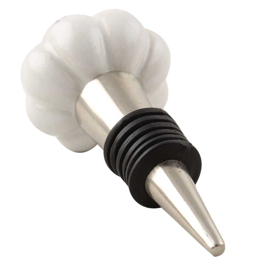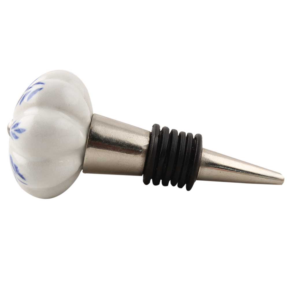 Blue Leaf Ceramic Melon Wine Stopper. Zinc Alloy Wine Bottle Stopper with Attractive Jute Bag Packaging.