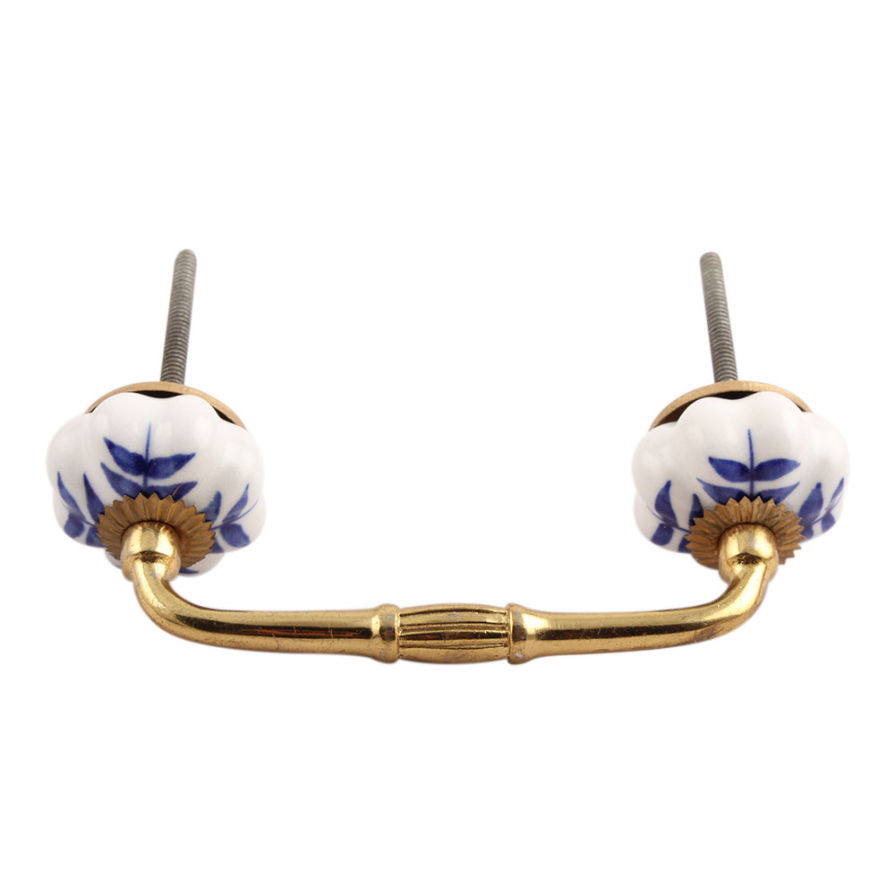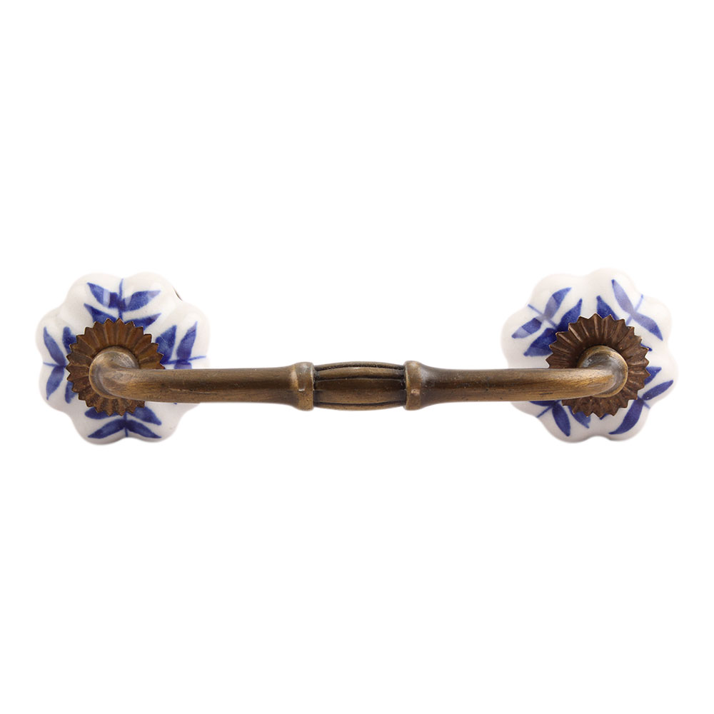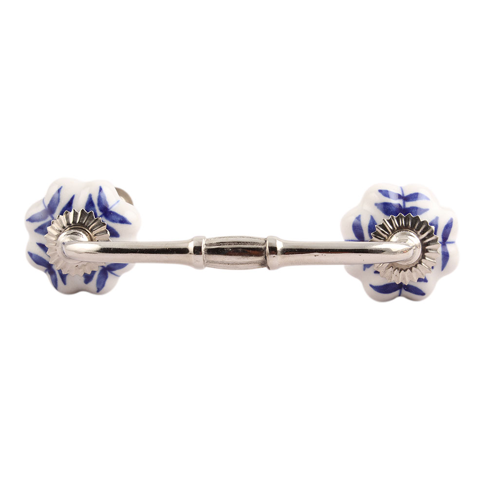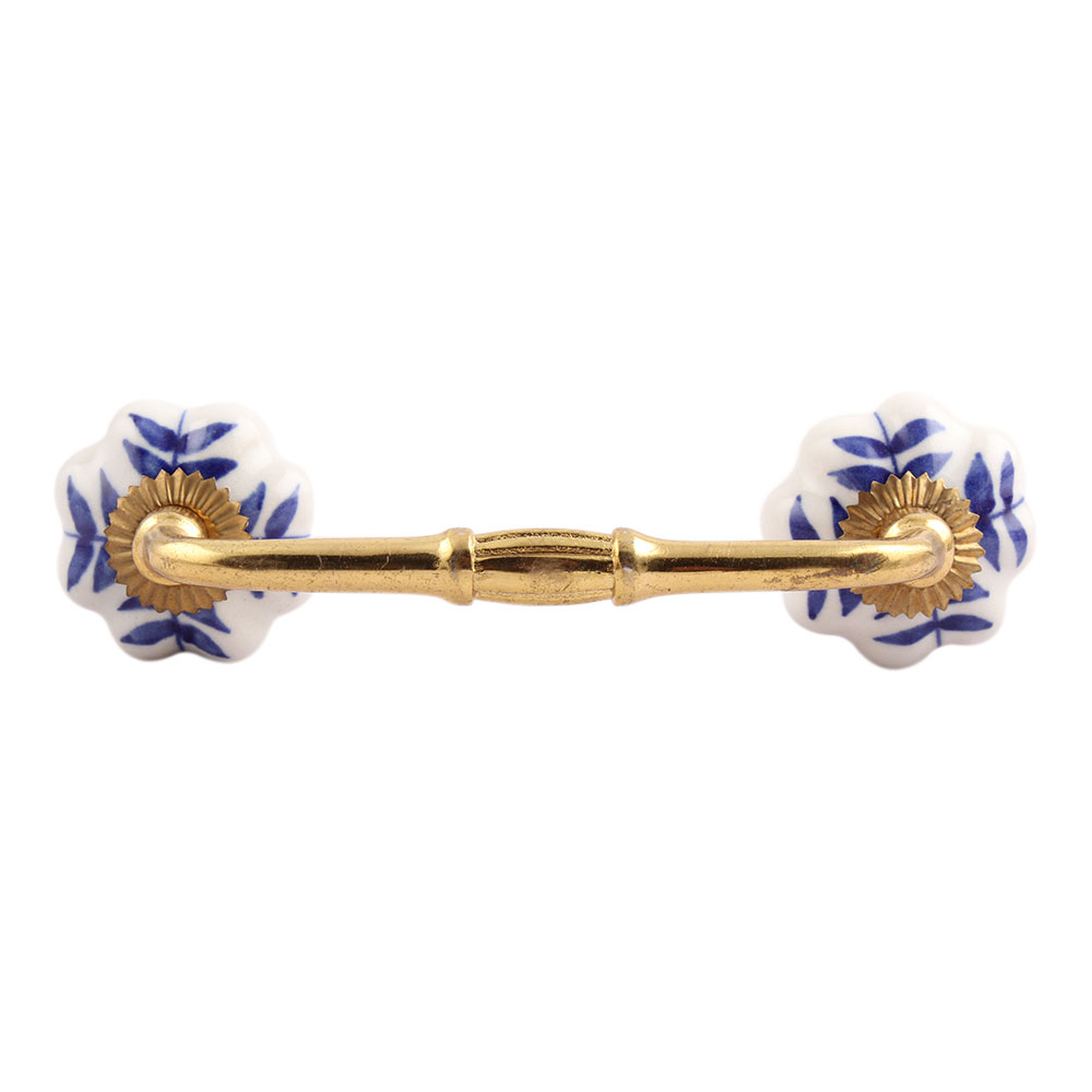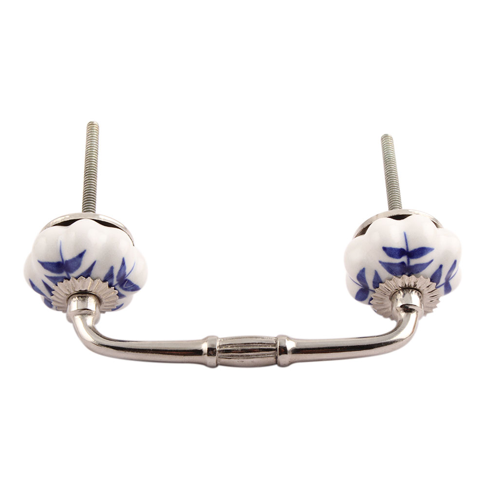 Blue Leaf Medium Ceramic Bridge Handle. Ideal for Drawer, Dresser, Cabinet, Wardrobe, Cupboard and Almirah.