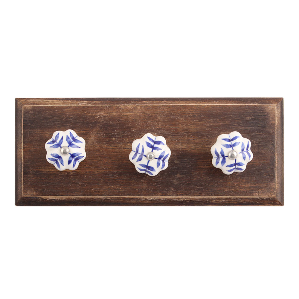 Blue Leaf Medium Ceramic Wooden Hook. A Perfect Complement to the Soft Tone of the Wood are these White Traditional Hat & Coat Hook Made of Genuine Porcelain and Brass. It can be use to Hang Jewellery, Leashes, Towels, Scarves, Light Weight Sweaters, Caps Etc.