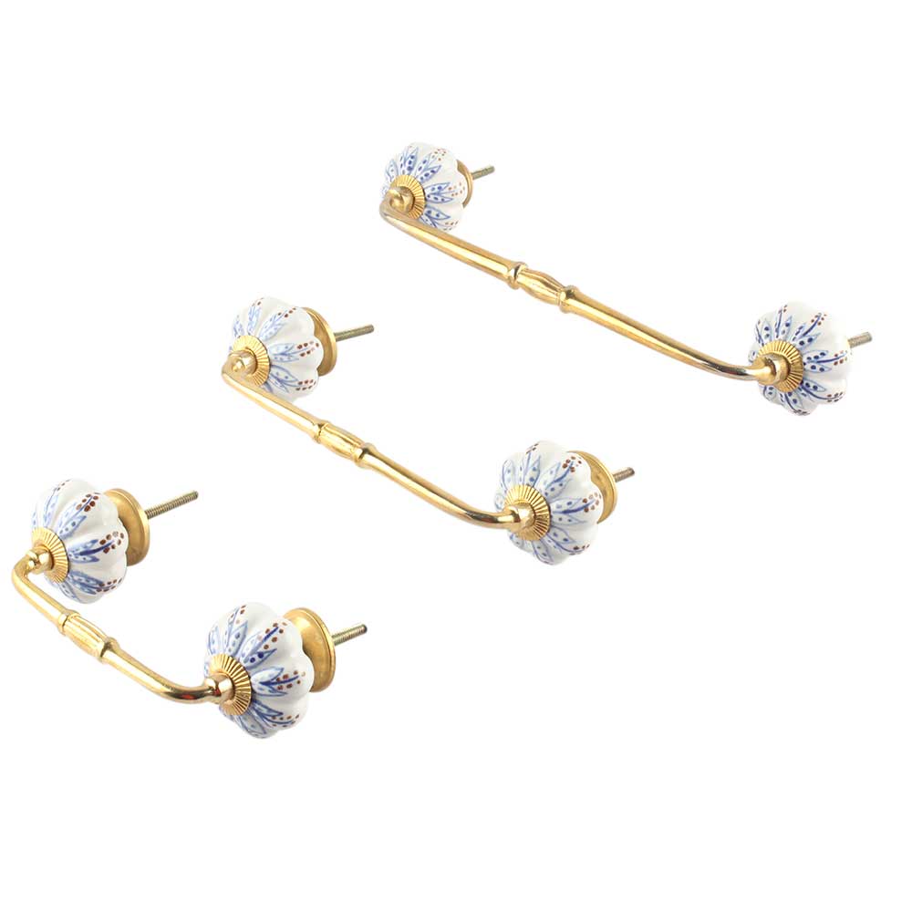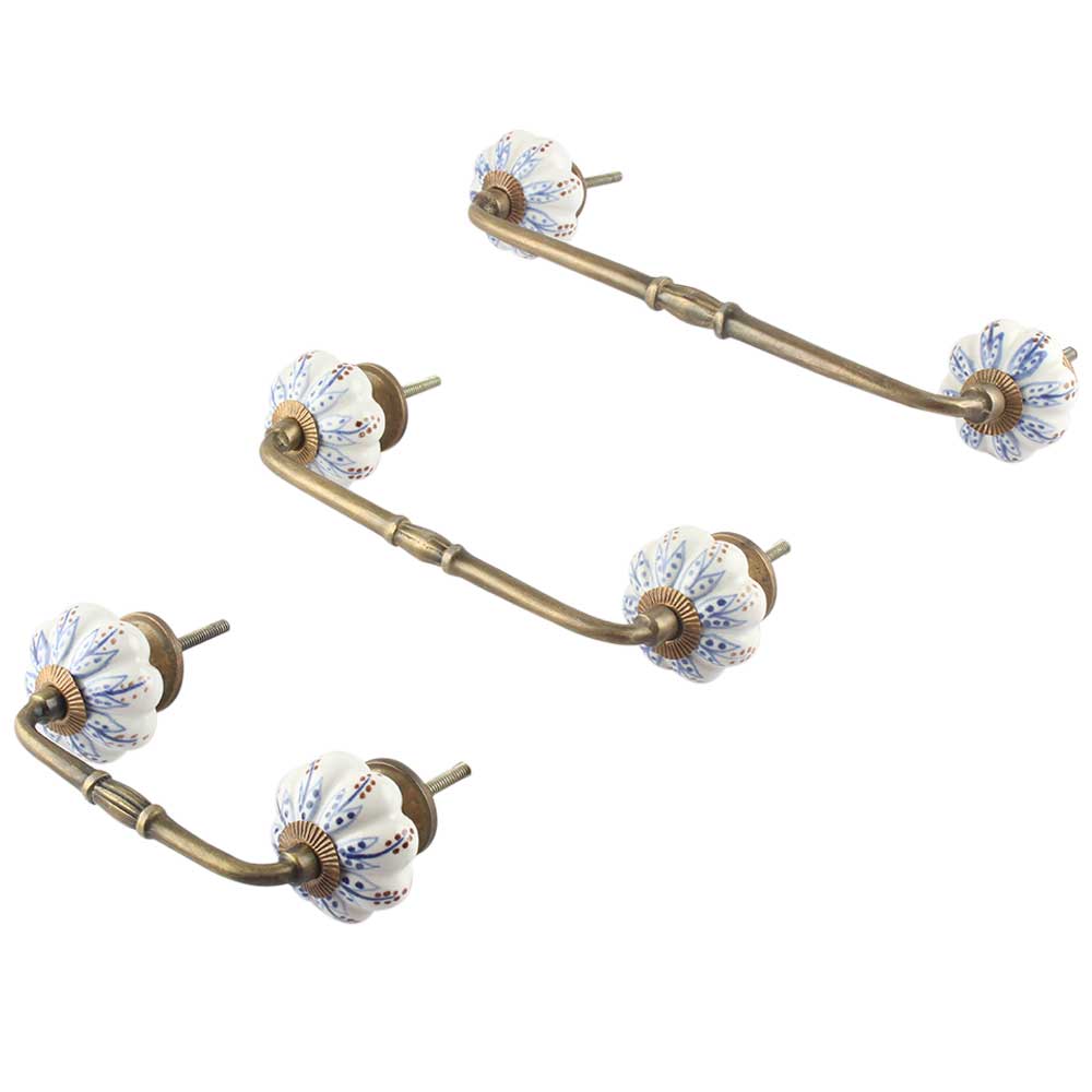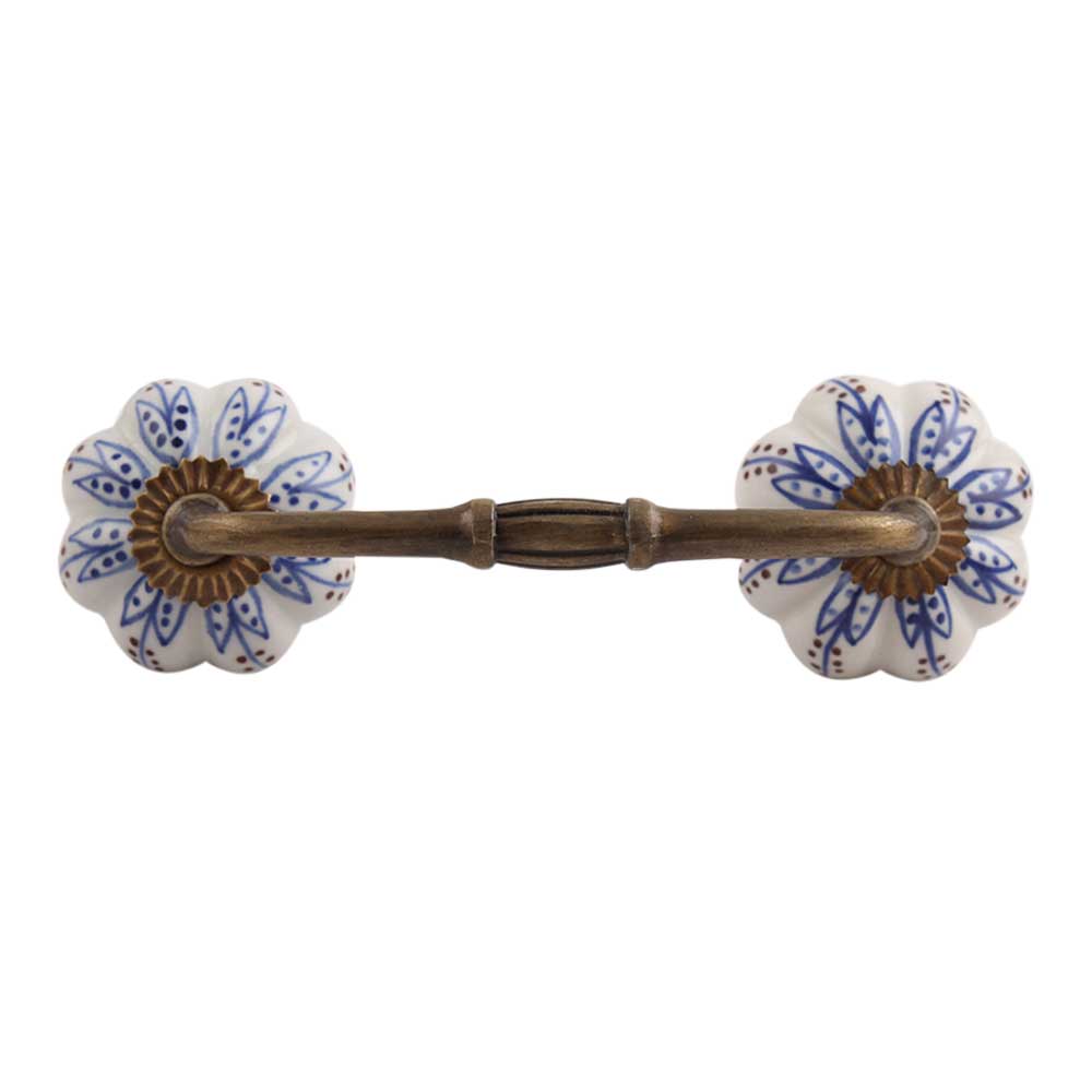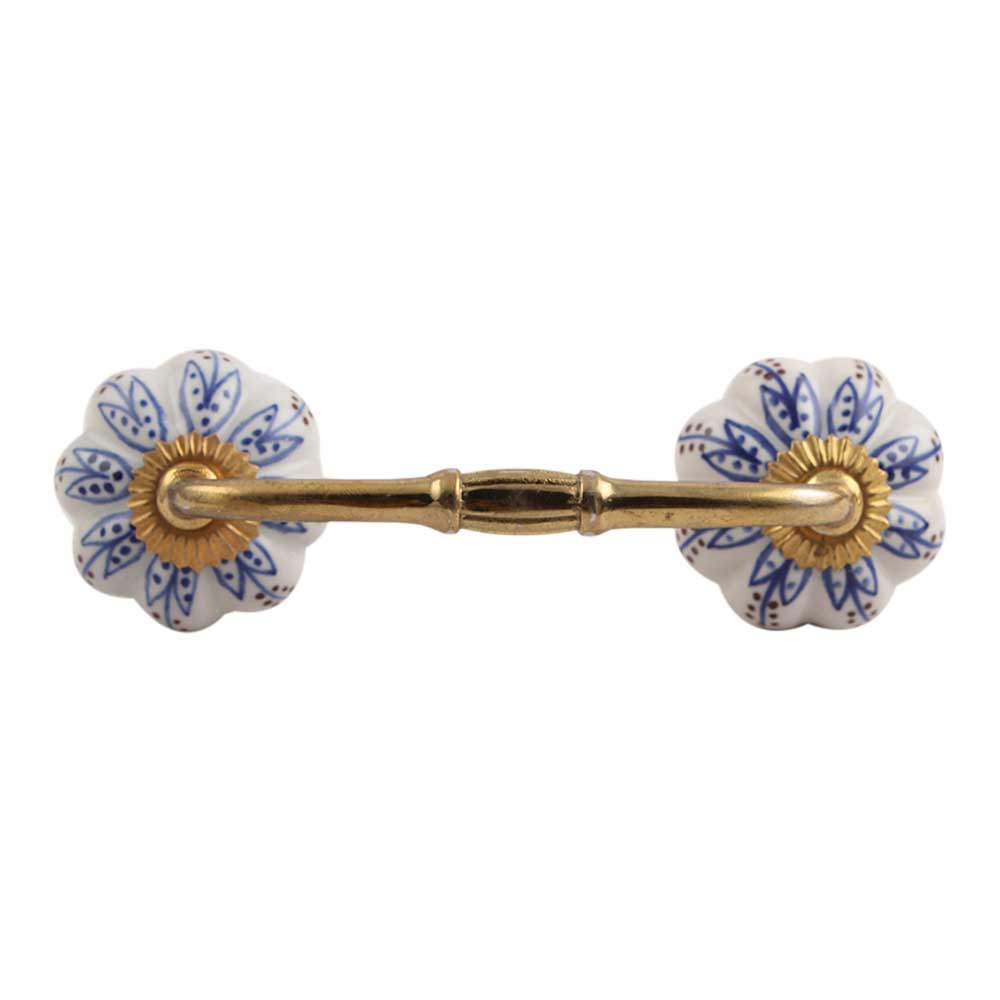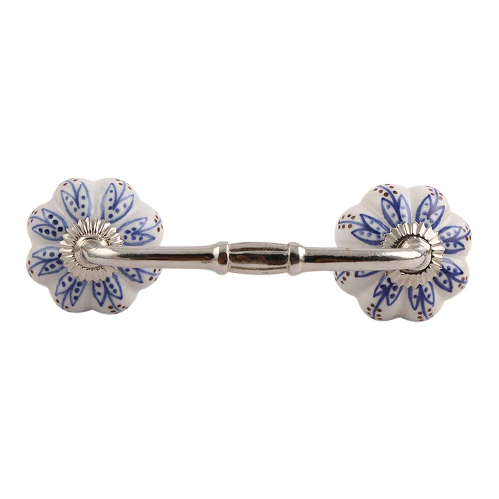 Blue Lotus Ceramic Bridge Handle. Ideal for Drawer, Dresser, Cabinet, Wardrobe, Cupboard and Almirah.