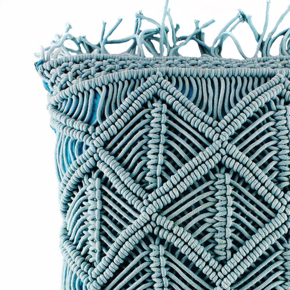 These lovely macramé cushion coverings are handcrafted by our excellent macramé craftsmen . These covers are made of heavy quality pure cotton macramé thread and are lined with calico on the inside.