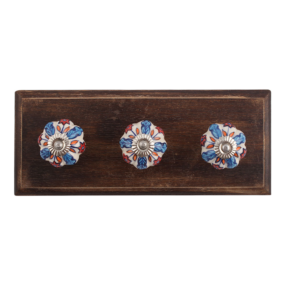 Blue Ocean Ceramic Wooden Hook. A Perfect Complement to the Soft Tone of the Wood are these White Traditional Hat & Coat Hook Made of Genuine Porcelain and Brass. It can be use to Hang Jewellery, Leashes, Towels, Scarves, Light Weight Sweaters, Caps Etc.