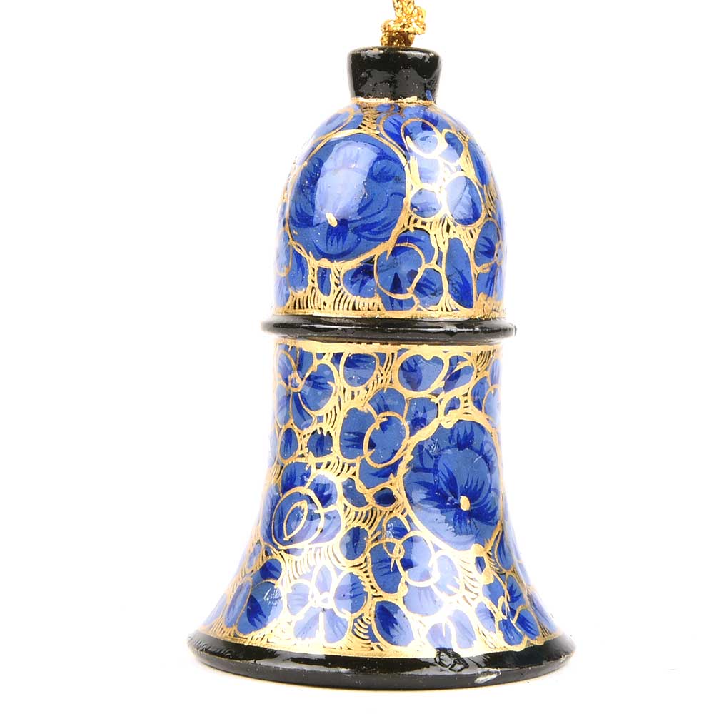 Blue Paper Mache Hand Painted Bell Christmas Tree Decoration