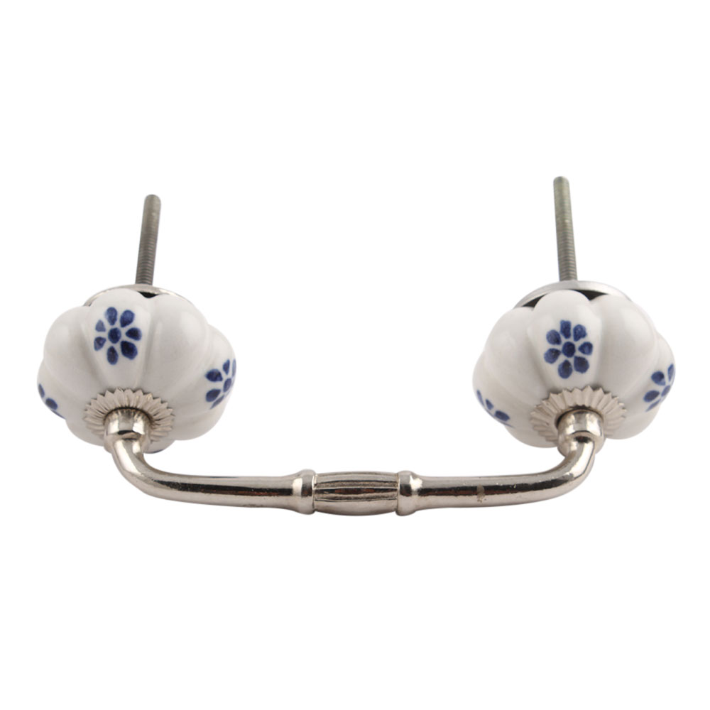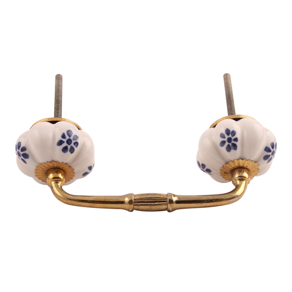Blue Protea Ceramic Bridge Handle. Ideal for Drawer, Dresser, Cabinet, Wardrobe, Cupboard and Almirah.